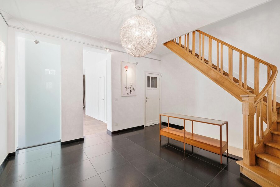 In the quiet and green Roberts Jones street in Uccle, between Montjoie and De Fré, you will find this characterful 1929 townhouse with 473 m² of living space. The location is ideal: near the Bois de la Cambre and shops, with easy access to the Ring road and Brussels city centre.