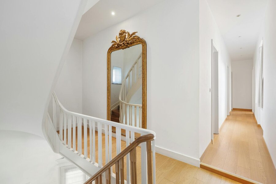 The house has no fewer than seven spacious bedrooms and three bathrooms spread over the floors. The master bedroom has its own ensuite bathroom and dressing room, ensuring optimal comfort.