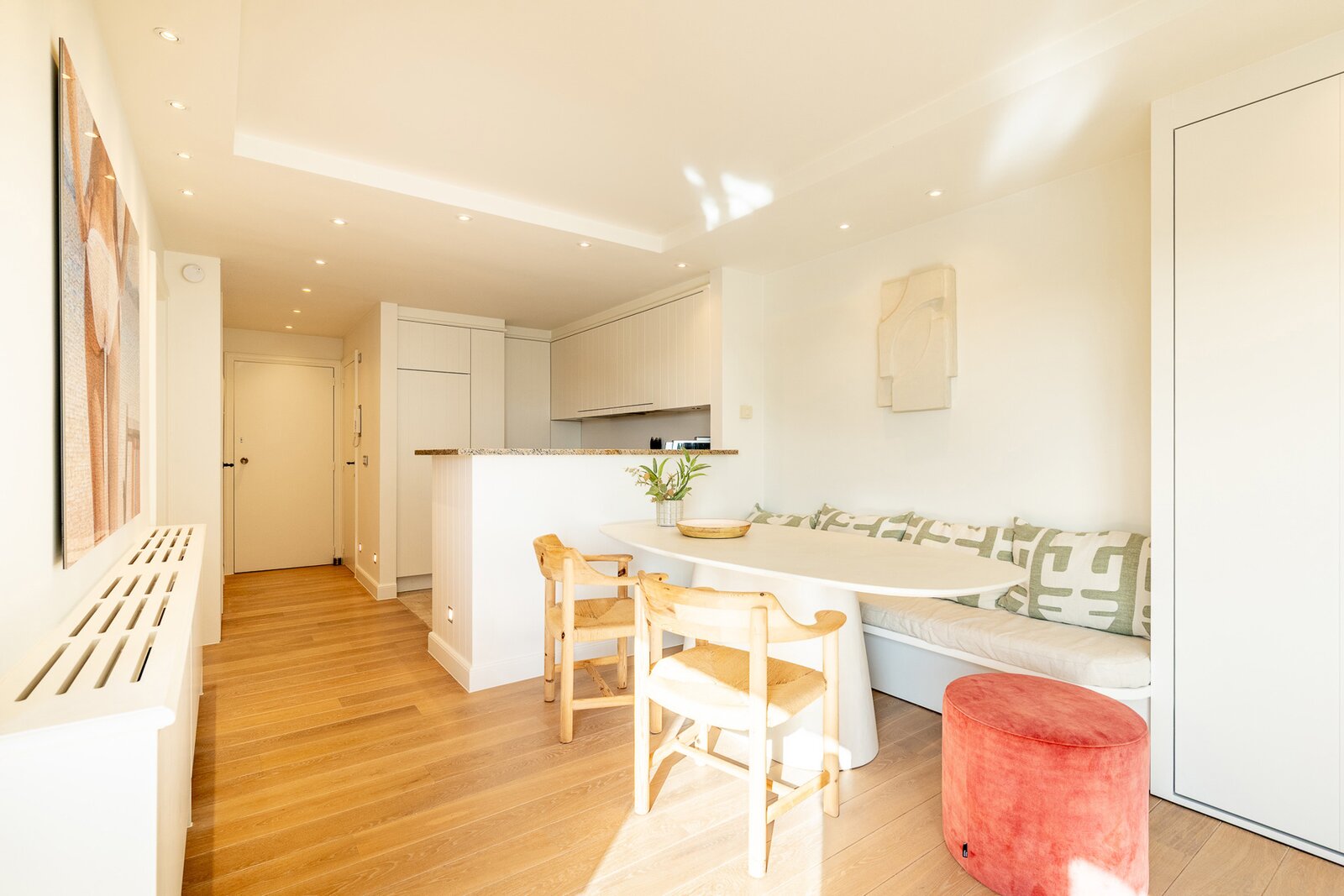 Indeling: inkomhal met vestiaire en toilet, gezellige woonkamer (met uitklapbaar bed) met zichten zowel op zee als op de zuidkant met een zeer aangenaam terras. Ingerichte open keuken met eethoek. Slaapkamer met ingemaakte kasten en een aparte douchekamer.