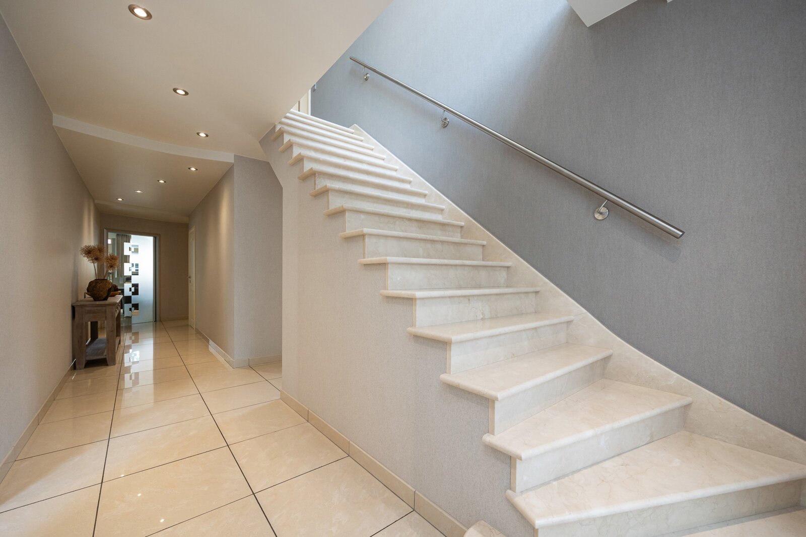 Indeling: 0: inkom, apart toilet, vestiaire, bureau, woonkamer, open keuken, slaapkamer, dressing, badkamer, berging, wasplaats en garage. +1: nachthal, 4 ruime slaapkamers, badkamer, strijkkamer/dressing. +2: bergzolder. Buiten: tuin, garage en werkhuis.