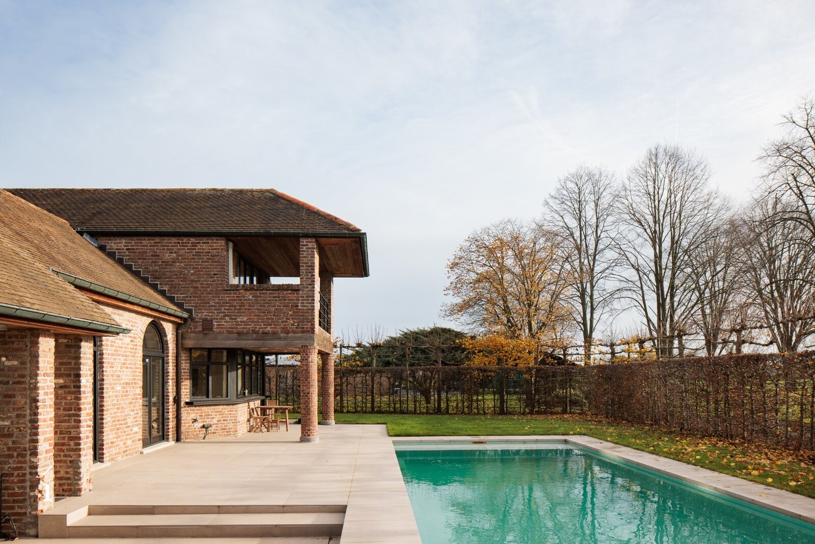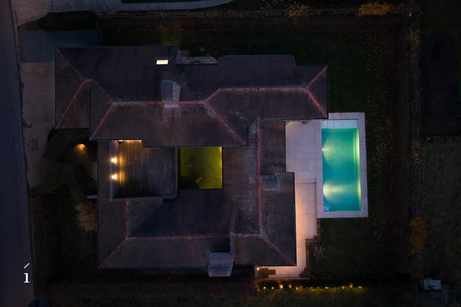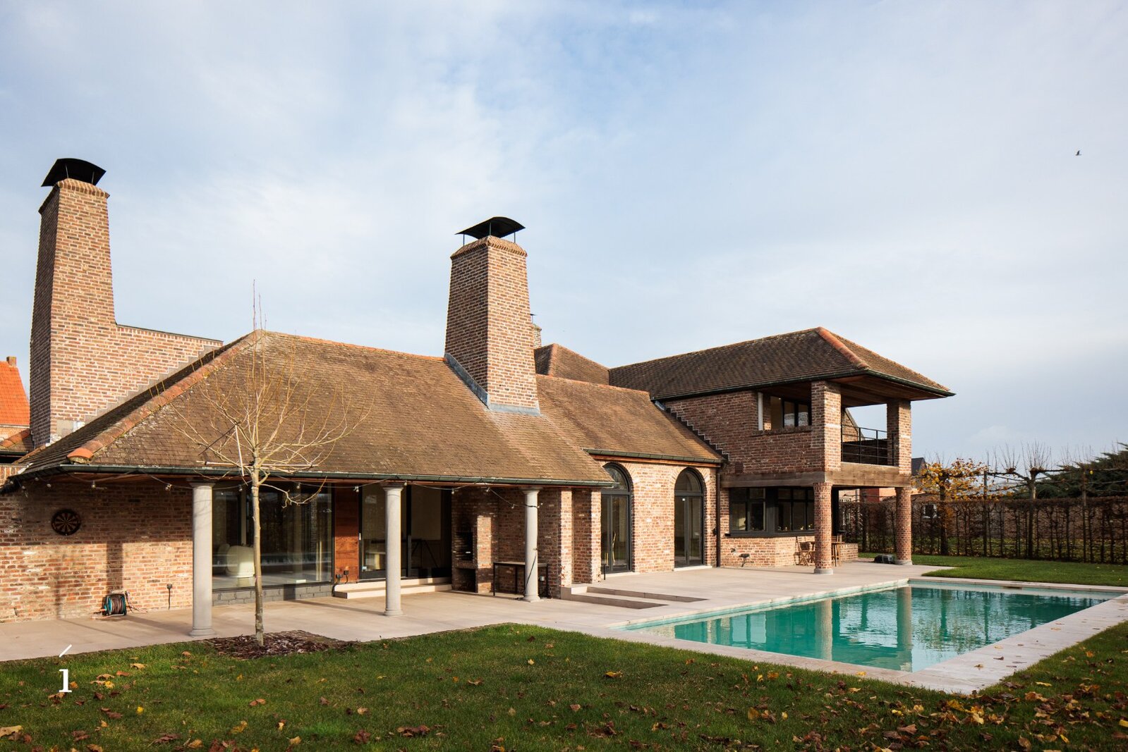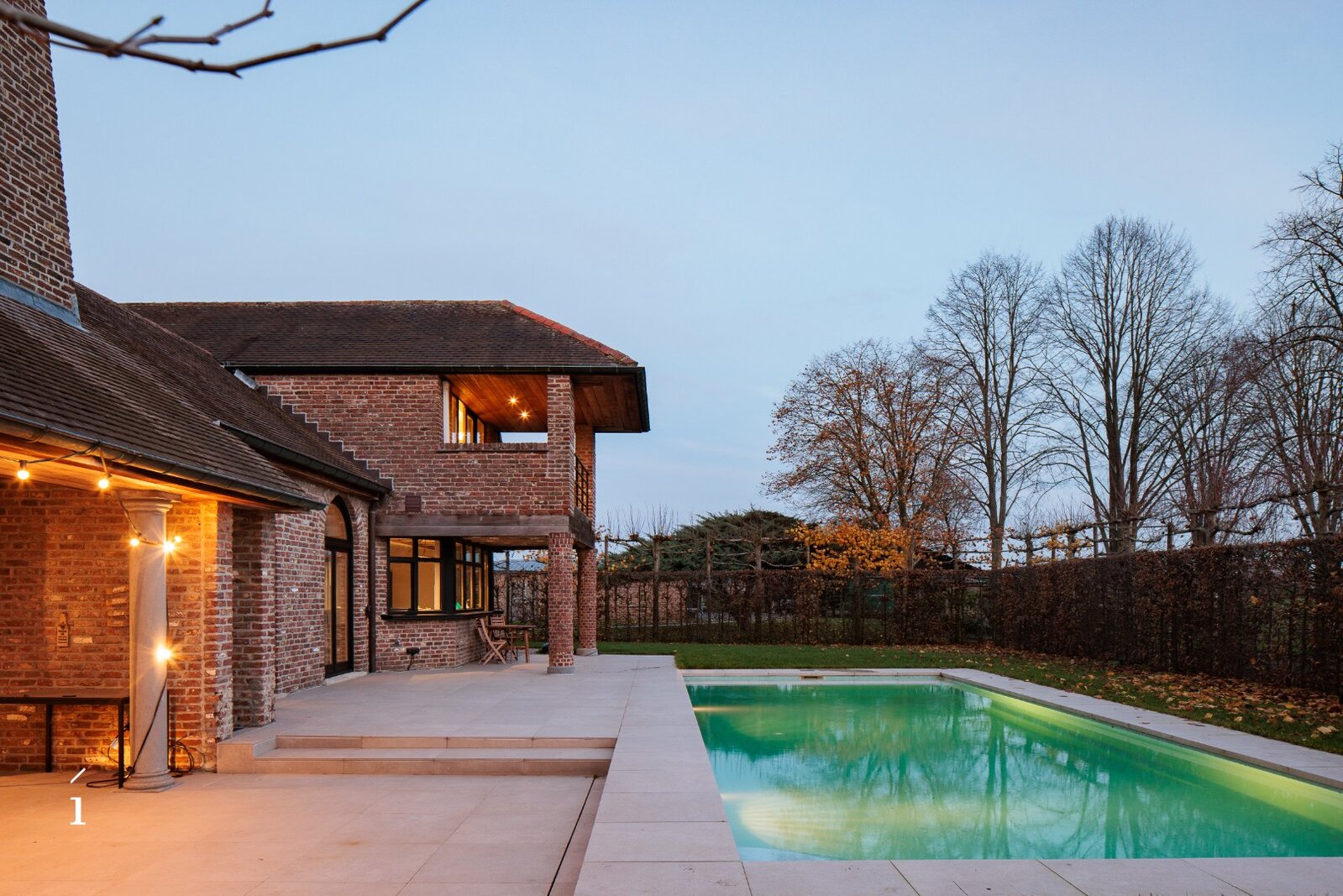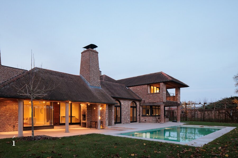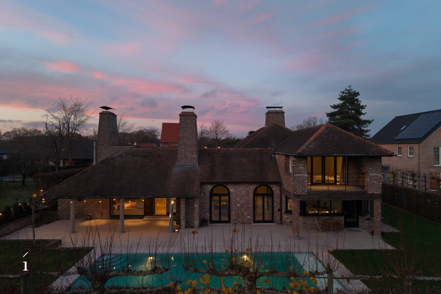 Deze villa brengt ruimte, licht en verfijning samen in een bijzonder geheel. Met een bewoonbaar oppervlak van 555 m², een perceel van 1.406 m² en een verwarmd zwembad, vormt deze woning een evenwichtige mix van comfort en stijl. De architectuur ademt rust, met grote glaspartijen, een centrale patio, meerdere haarden en een doordachte indeling die elke ruimte verbindt met het buitenleven.
