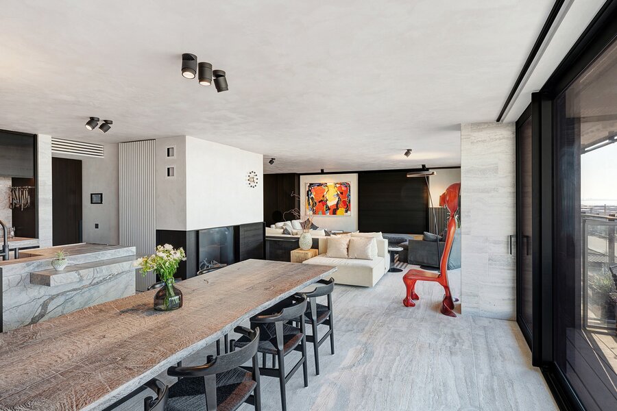 Ontdek dit uitzonderlijke plateau-appartement in de residentie Midan aan het Rubensplein met panoramisch zeezciht en een indrukwekkende gevelbreedte van 12,5 meter. U wordt verwelkomd in een royale inkomhal met vestiaire en gastentoilet. De ruime leefruimte met gashaard combineert een comfortabel zitgedeelte met een bureauhoek en geniet van een adembenemend frontaal zeezicht. Grote schuiframen geven uit op het voorterras van 13 m², waar u volop kan genieten van het panoramische uitzicht op zee. De open keuken is uitgerust met hoogwaardige Miele-toestellen en sluit aan op een ruime bijkeuken/berging en een aparte wasplaats. Het appartement beschikt over vier volwaardige slaapkamers, elk geschikt voor een dubbel bed en met directe toegang tot het achterterras. De master bedroom heeft een en-suite badkamer met ligbad, douche en lavabo, evenals een apart toilet. Tweede en derde volwaardige slaapkamer, douchekamer, apart toilet, vierde slaapkamer met badkamer. Dit appartement biedt een unieke woonbeleving dankzij zijn ongeëvenaarde ligging en sublieme afwerking (terrazzo, Italiaanse marmer, travertin), ontworpen door interieurarchitect Frédéric Kielemoes. Mogelijkheid tot aankoop van een garagebox voor vier wagens.