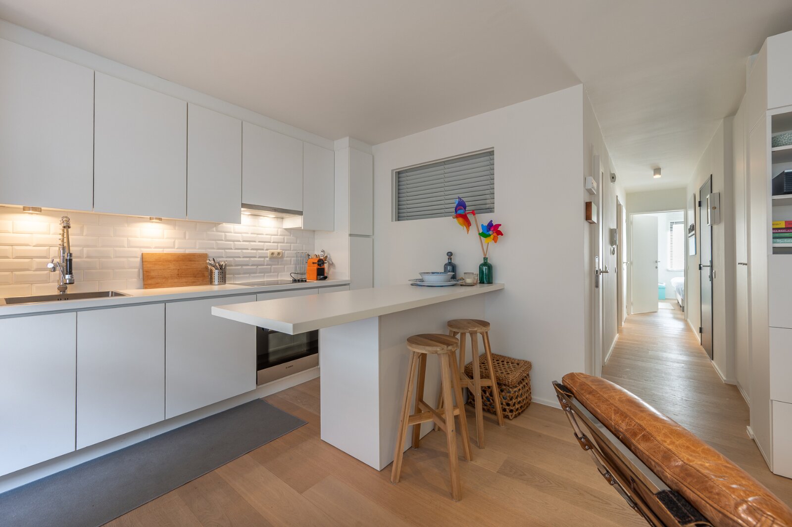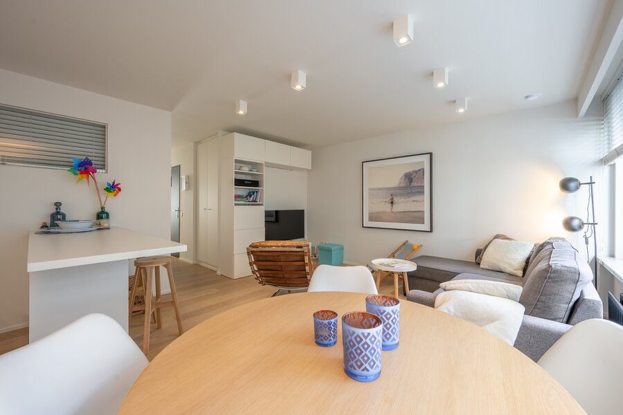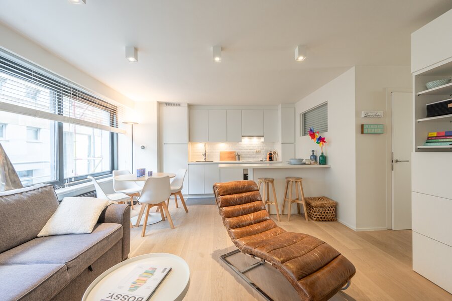 This charming apartment is located in a prime spot in the heart of the Zoute, in a quiet street just off the beachfront promenade (Strandstraat), offering a side view of the sea.