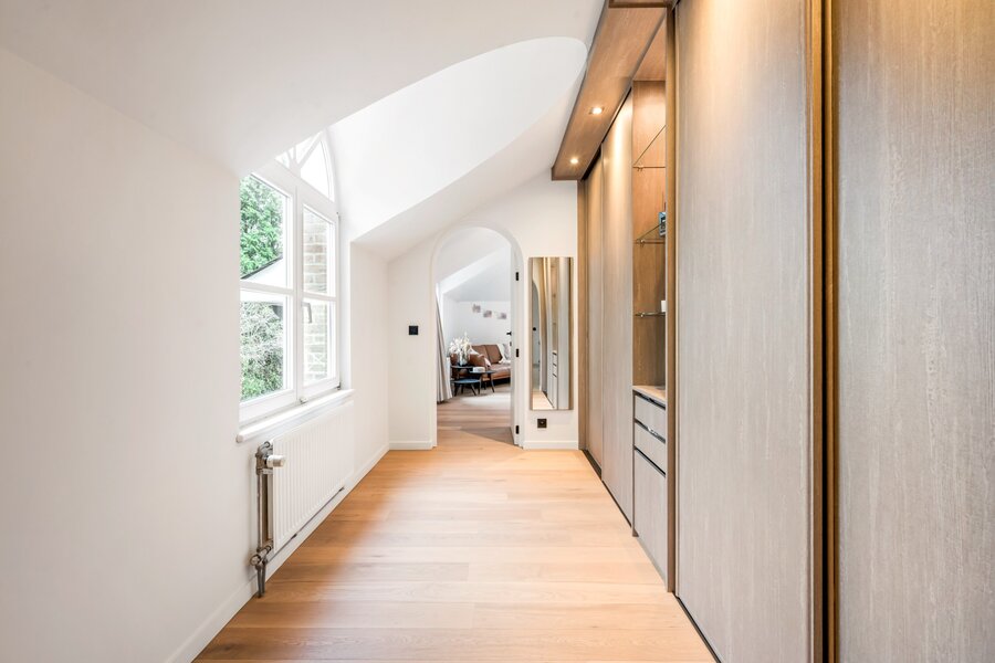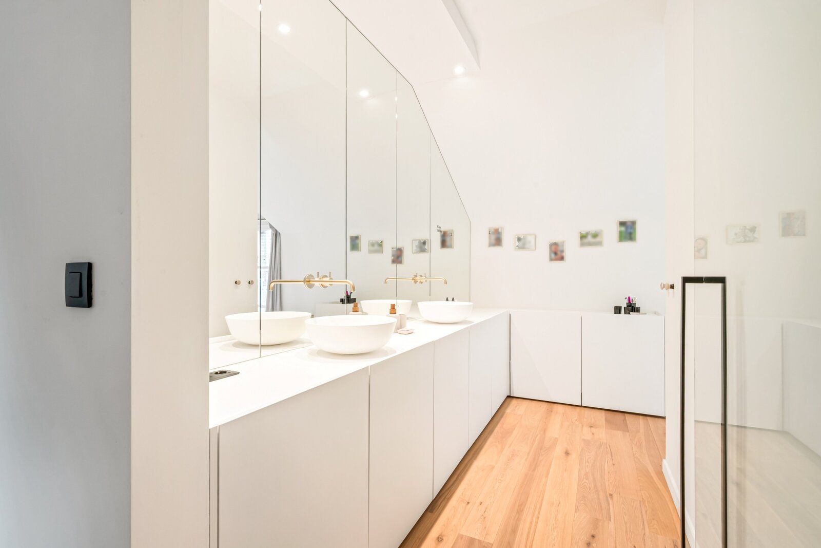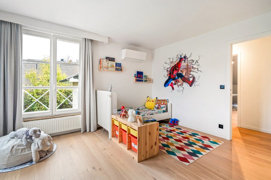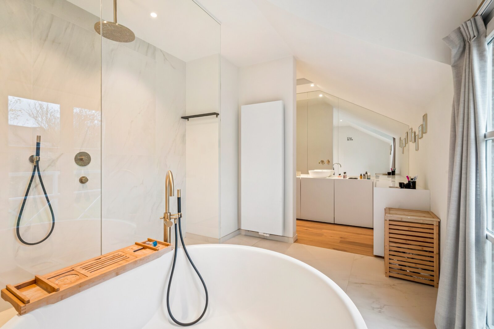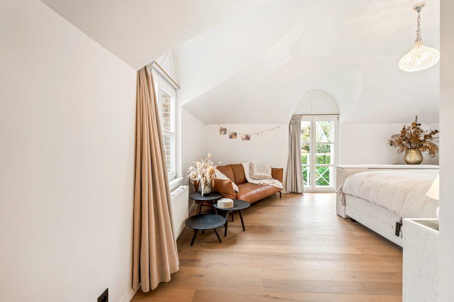 De masterbedroom is een waar luxe toevluchtsoord, voorzien van een ruime ingemaakte dressing en een elegante badkamer met ligbad én dubbele inloopdouche. Daarnaast bevinden zich op deze verdieping nog drie volwaardige slaapkamers, een extra badkamer en een apart toilet.