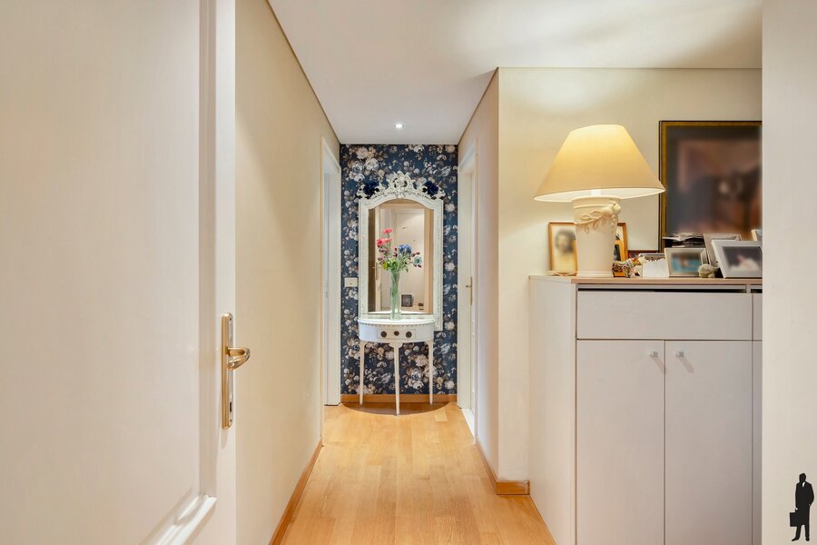 - Inkomhal op gietvloer met gastentoilet (handenwasser) en vestiaire.