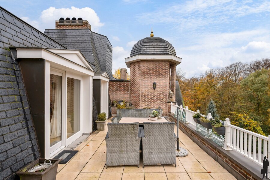 Exclusieve duplex-penthouse van ca. 213 m² in kasteel Blauwhof met 2 terrassen, lift en garagebox