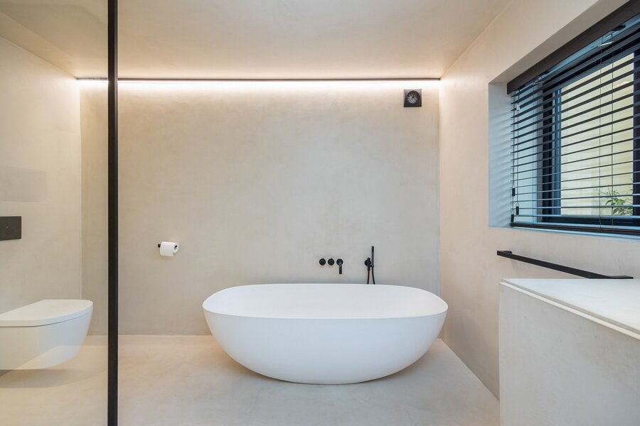 Also on the ground floor spacious master bedroom with bathroom. On the first floor there is another large and a small bedroom with bathroom.