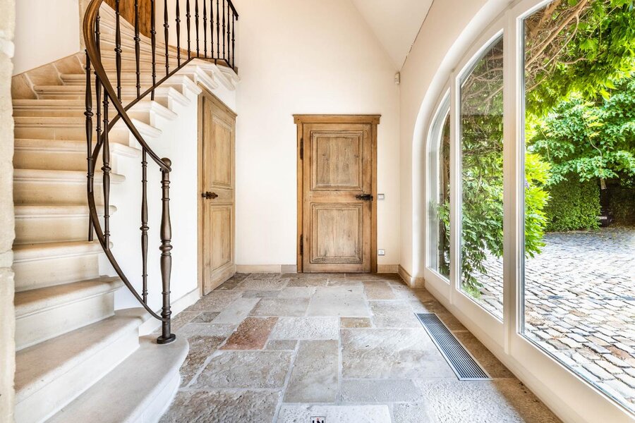 A second staircase in natural stone leads to two further bedrooms, each with a private annex suitable for conversion into an en-suite bathroom, office, playroom, or similar. Perfect for guests, children, extended family or an au pair.