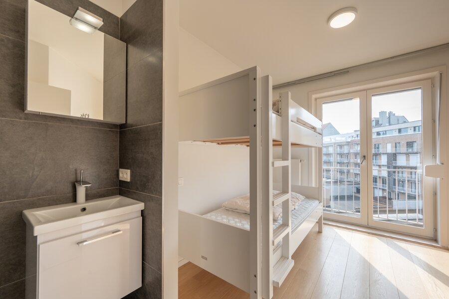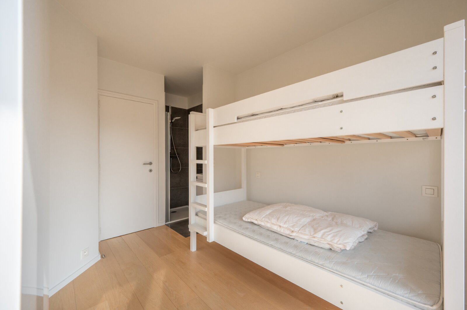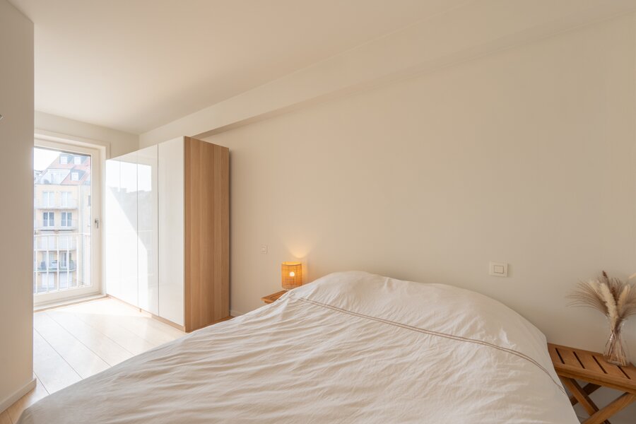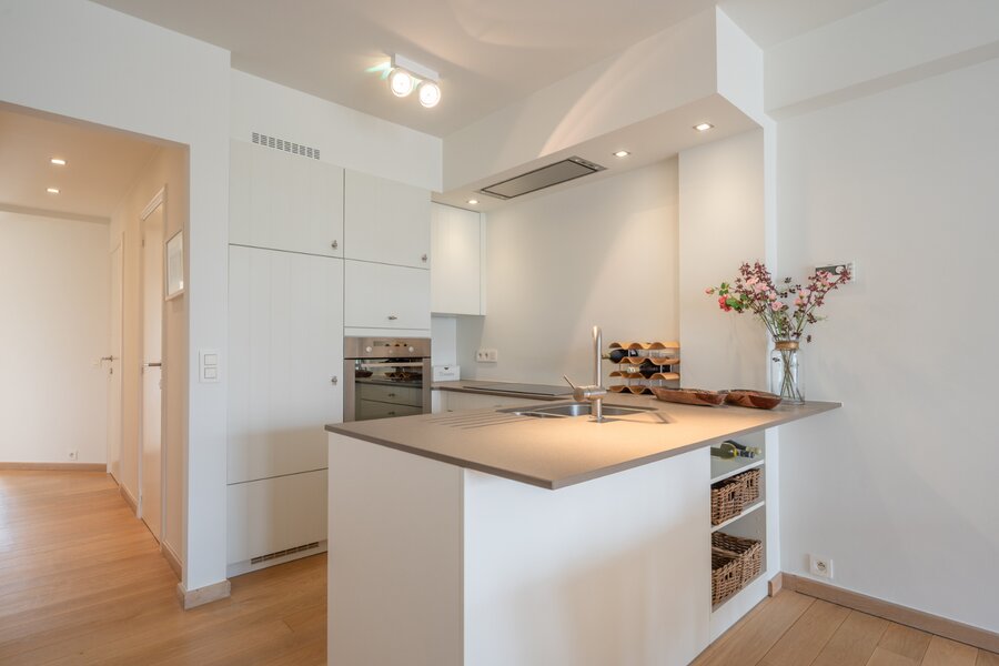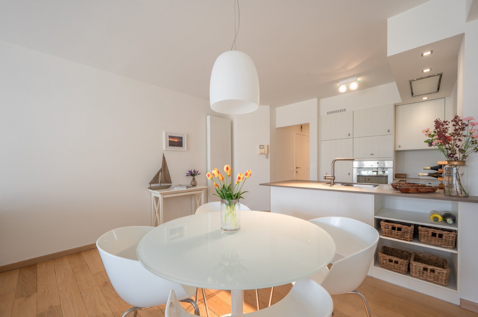 This recently renovated apartment combines a fresh, modern look with a prime location near Zoute. It is located on the fourth floor and is easily accessible by elevator.