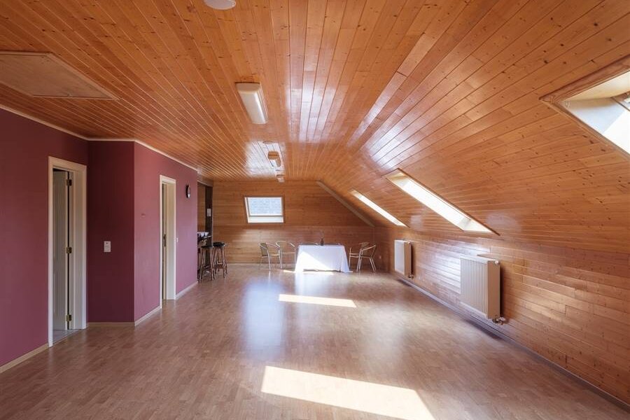 - Polyvalente ruimte van ca. 150 m² op de eerste verdieping, voorzien van keukentje en badkamer. Ideaal als hobbyruimte, praktijk of aparte woonunit