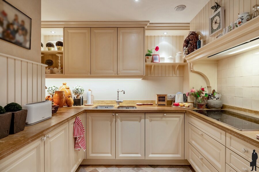 De keuken is uitgerust met kwalitatieve Miele-toestellen: een keramisch kookvuur, oven, microgolfoven, koelkast, vriezer, vaatwasser en een dubbele spoelbak. Aansluitend is er een ruime en praktische voorraadberging.