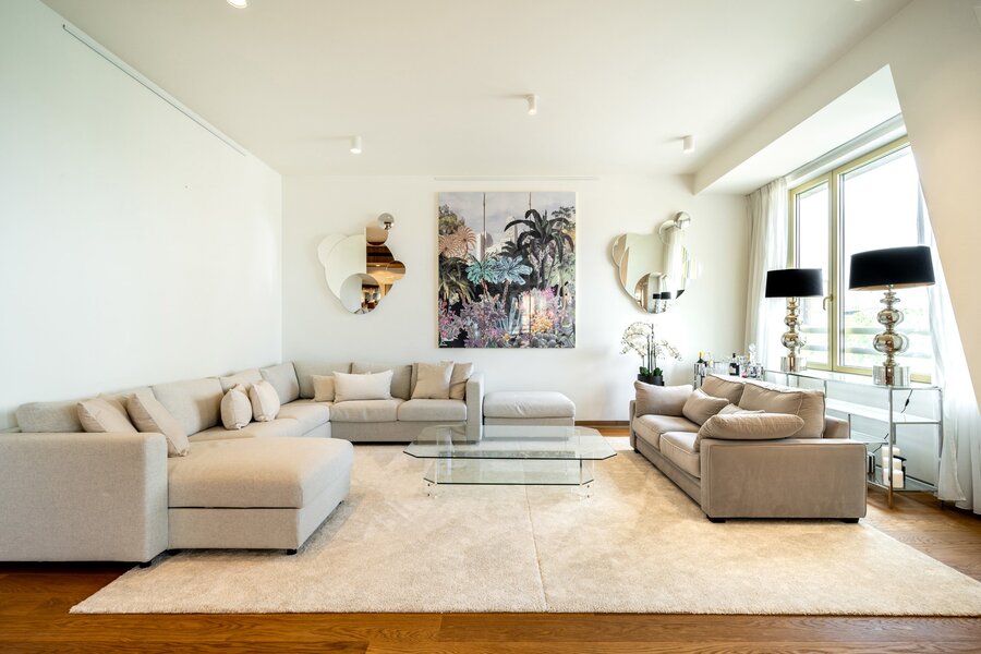 Other: a parking space, laundry room, cellar, concierge service, bicycle storage, and underfloor heating and cooling. Charges: €700/month for maintenance of common areas, concierge service, and private heating and hot water. (EPC): B