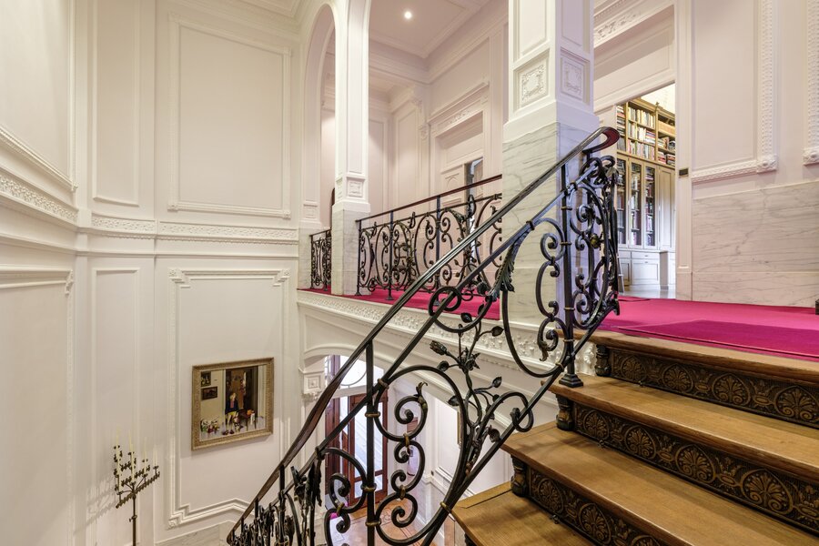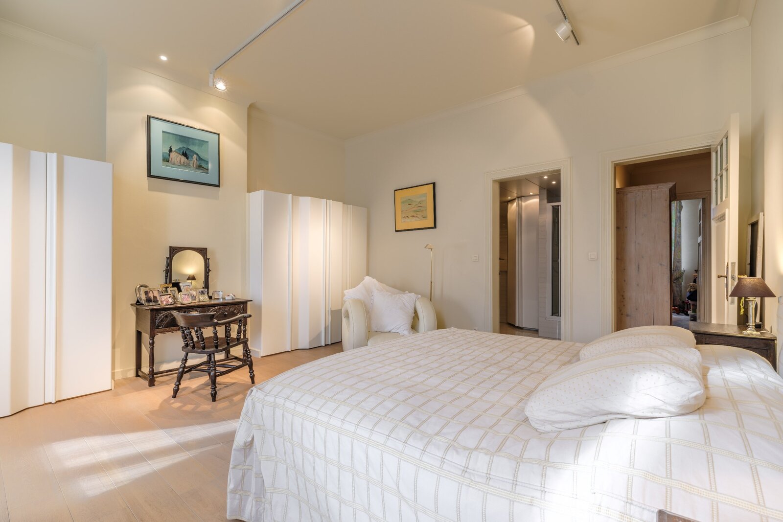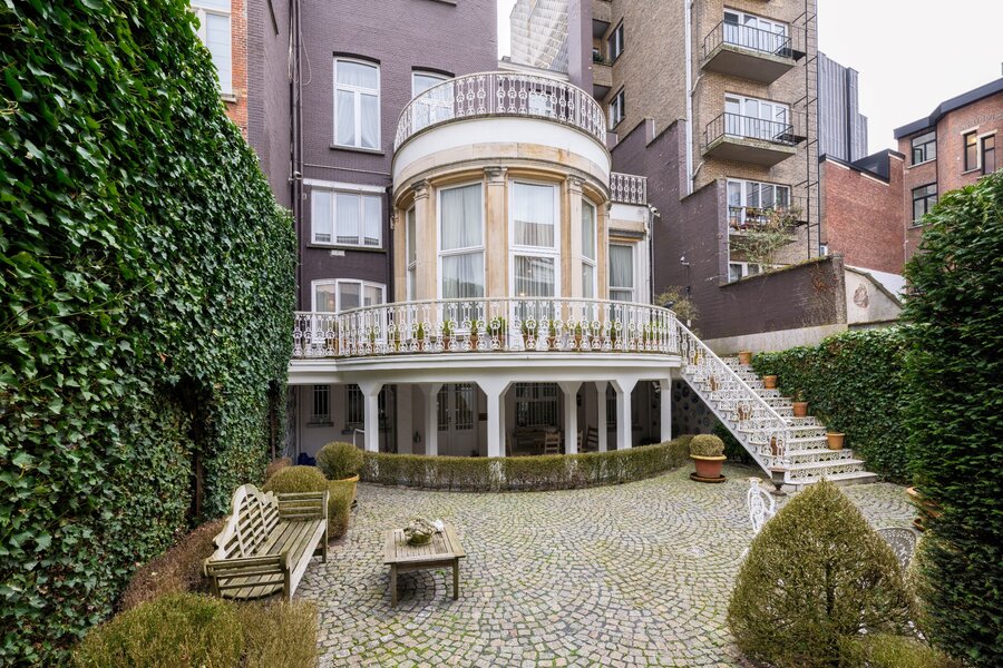 De eerste verdieping biedt een royale masterbedroom met dressing en een luxueuze ensuite badkamer. Daarnaast vind je hier een ruime bureau en een sfeervolle bibliotheek met ingebouwde boekenkasten. Op de tweede verdieping bevinden zich drie ruime slaapkamers, elk met een eigen badkamer, en een speelkamer. Vervolgens nog een prachtige stadstuin met volledige privacy.