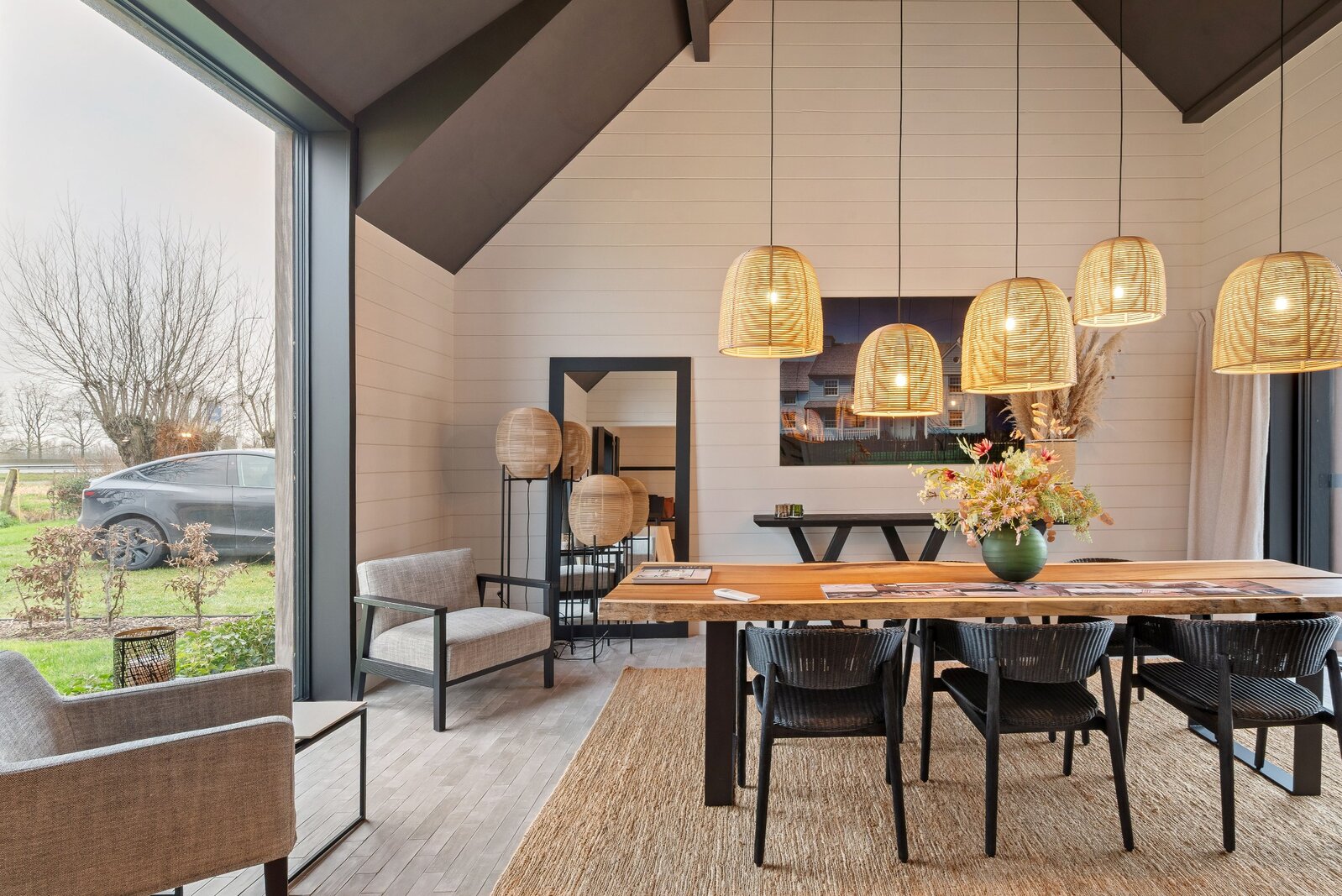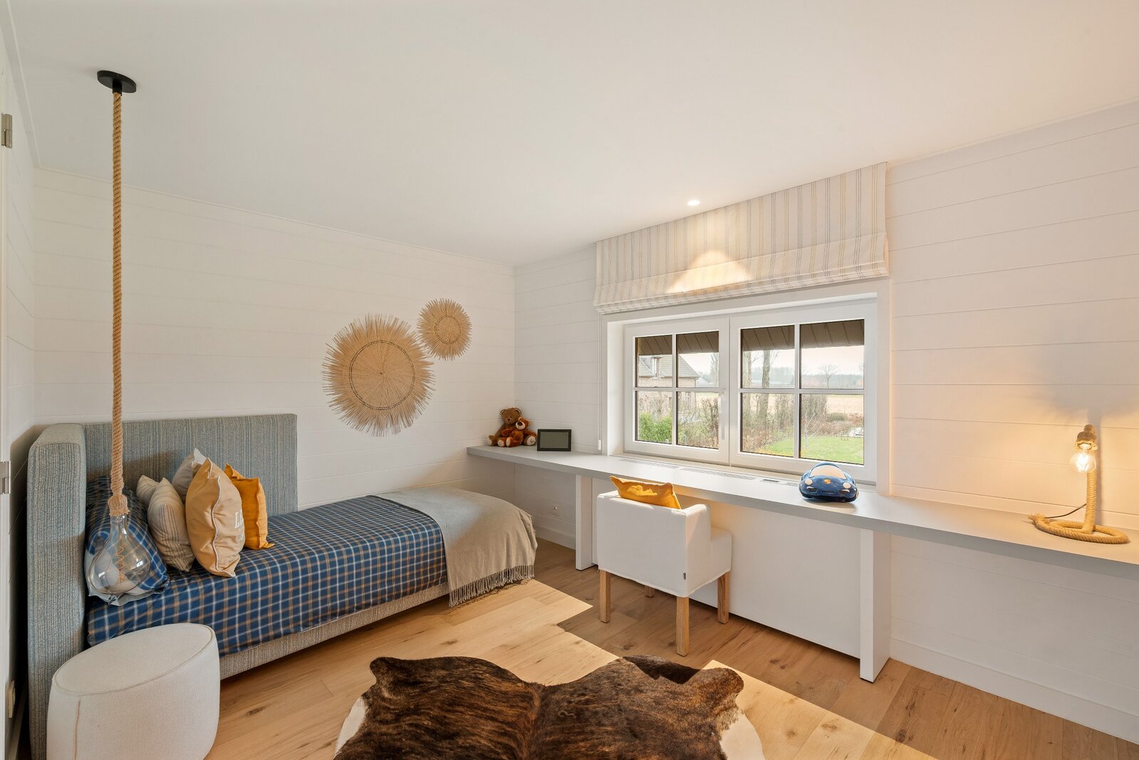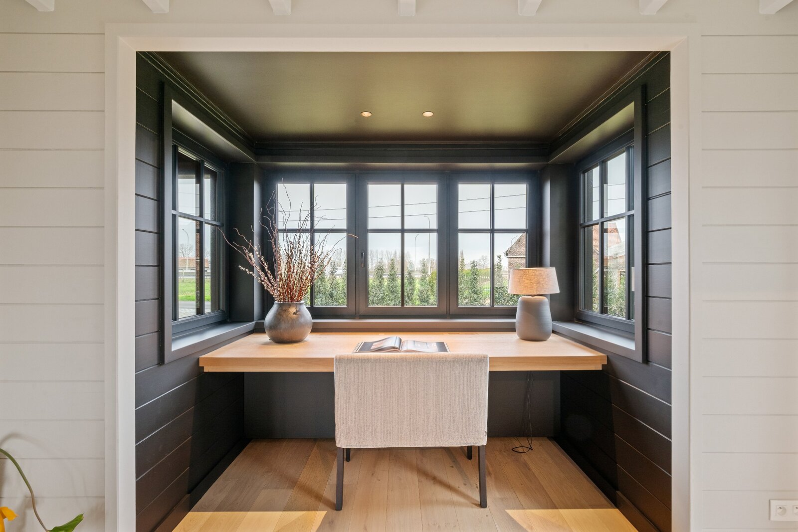 Naast de woning staat een kwalitatief afgewerkte garage, momenteel ingericht als inspirerend thuiskantoor. Deze eigendom staat garant voor een doordachte indeling en uitzonderlijke afwerking.