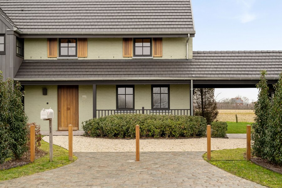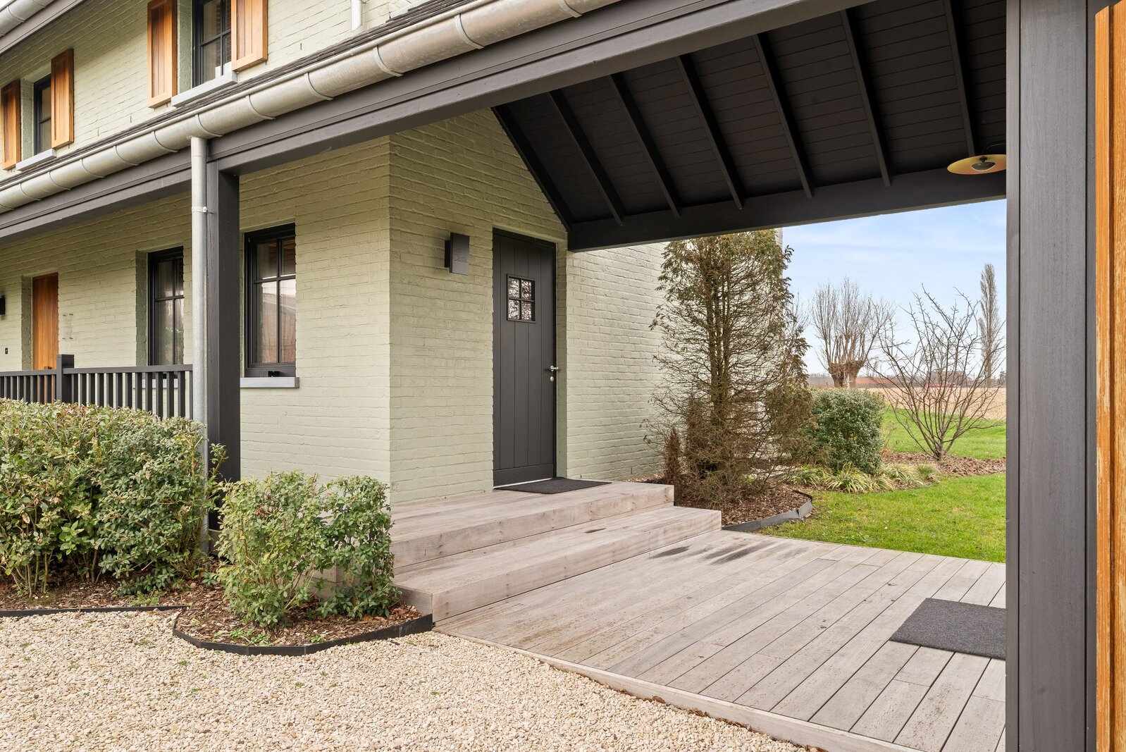 Deze hoogwaardig afgewerkte nieuwbouwwoning, te koop onder het gunstige stelsel van registratierechten, ligt op een uitstekend bereikbare en toch zeer groene locatie in Hansbeke. Het zorgvuldig aangelegde perceel vormt een natuurlijk verlengstuk van de woning en biedt een prachtig, rustgevend panorama over de omliggende natuur.