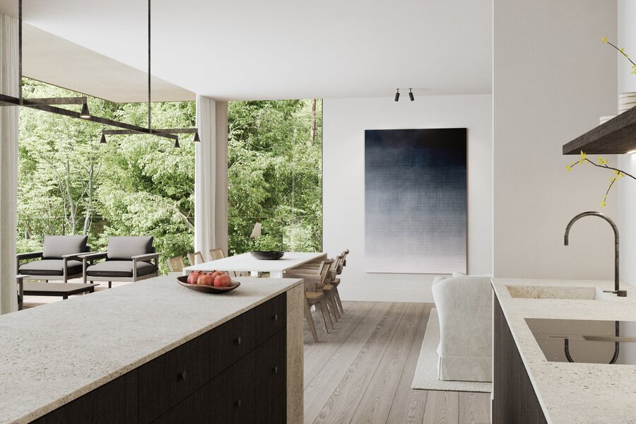 Nestled in lush greenery in the heart of La Hulpe, overlooking the Grand Pond, this contemporary new development – the result of a collaboration between Marc Corbiau and Vlassak-Verhulst – features exclusive apartments within two villas.