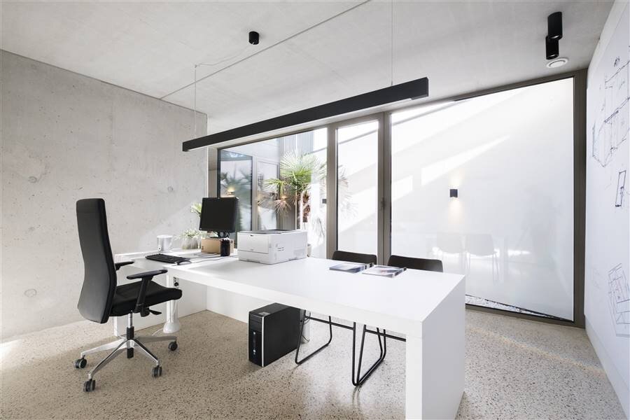 On entering the house, you immediately notice the feeling of space and light. The light-rich living space is the heart of the home, with large windows creating a seamless connection to the garden. The separate TV corner offers a cozy, intimate place to relax, while the open living kitchen invites stylish enjoyment and hospitality.