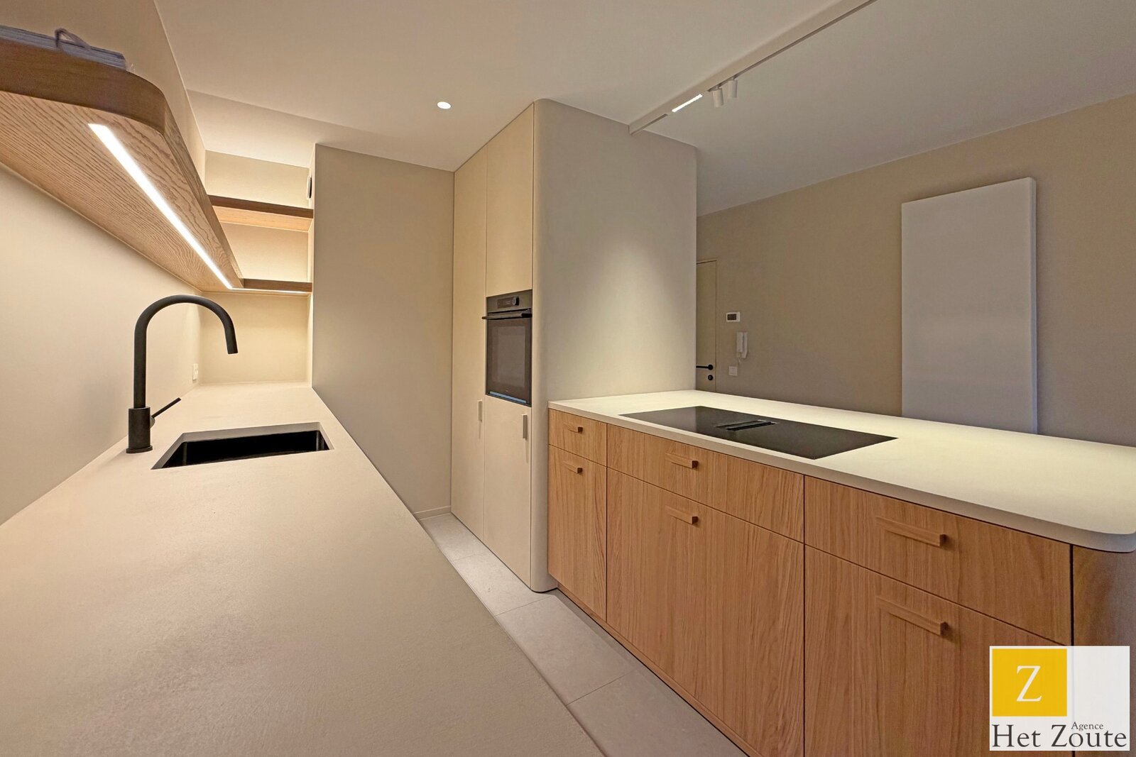 Het appartement werd volledig gestript en met oog voor detail vernieuwd volgens hedendaagse normen, wat resulteert in een stijlvolle en comfortabele woonst. U komt binnen via de inkomhal die uitgeeft op een volledig ingerichte open keuken, naadloos verbonden met de zeer ruime en lichtrijke woonkamer. Vanuit de leefruimte heeft u toegang tot het terras, waar u geniet van een rustgevend zicht op tuinen.