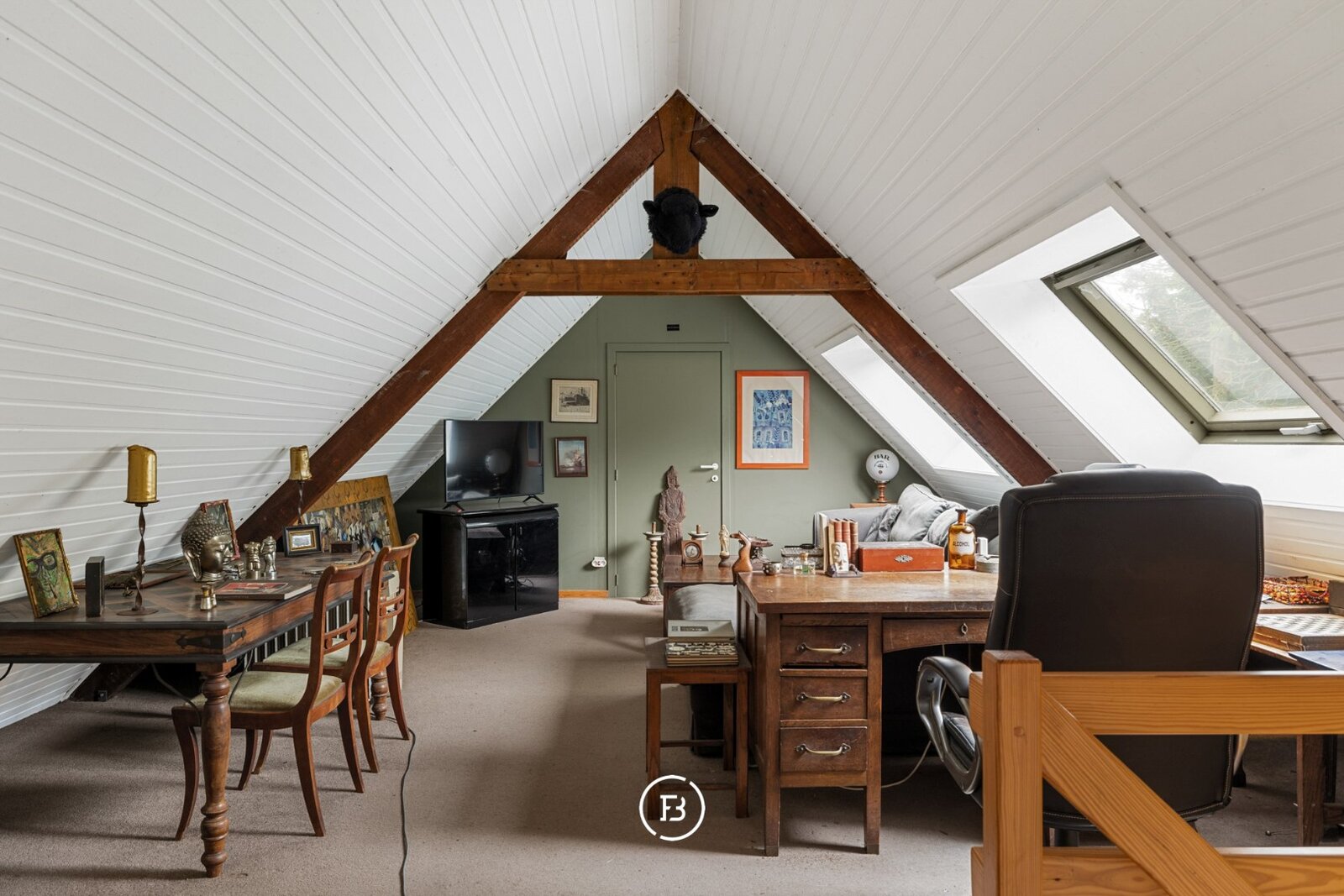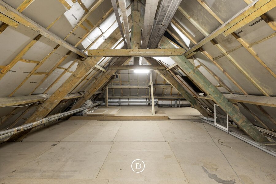 Op de bovenverdieping bevinden zich twee extra slaapkamers, elk bereikbaar via een aparte trap, wat extra privacy biedt. Eén van de slaapkamers beschikt bovendien over een eigen badkamer. De overige zolderruimte is royaal en kan op verschillende manieren ingericht worden.