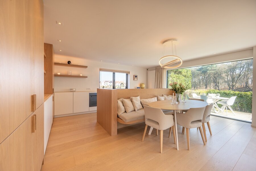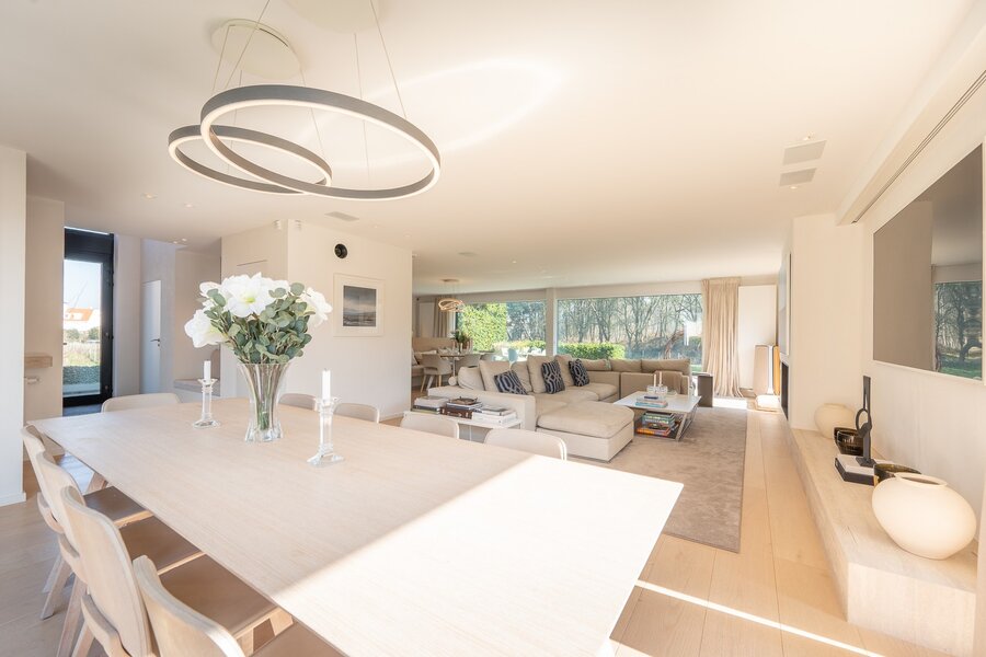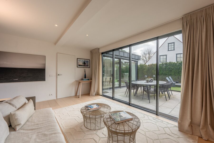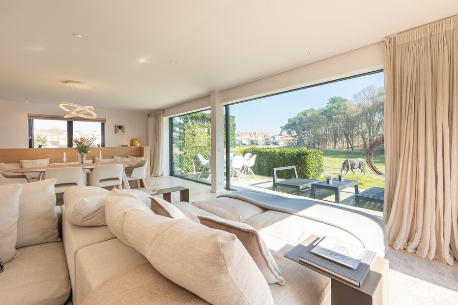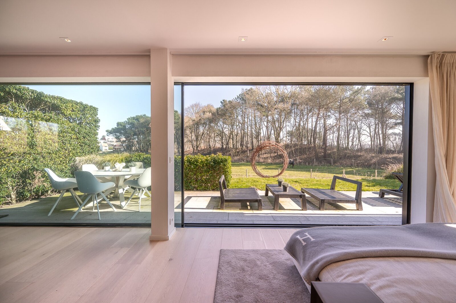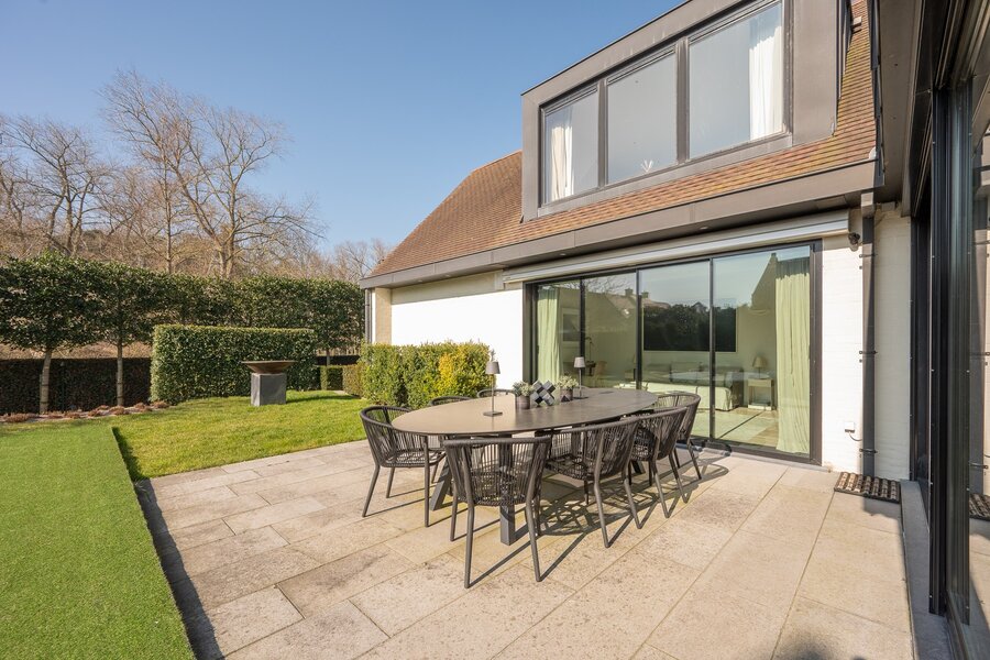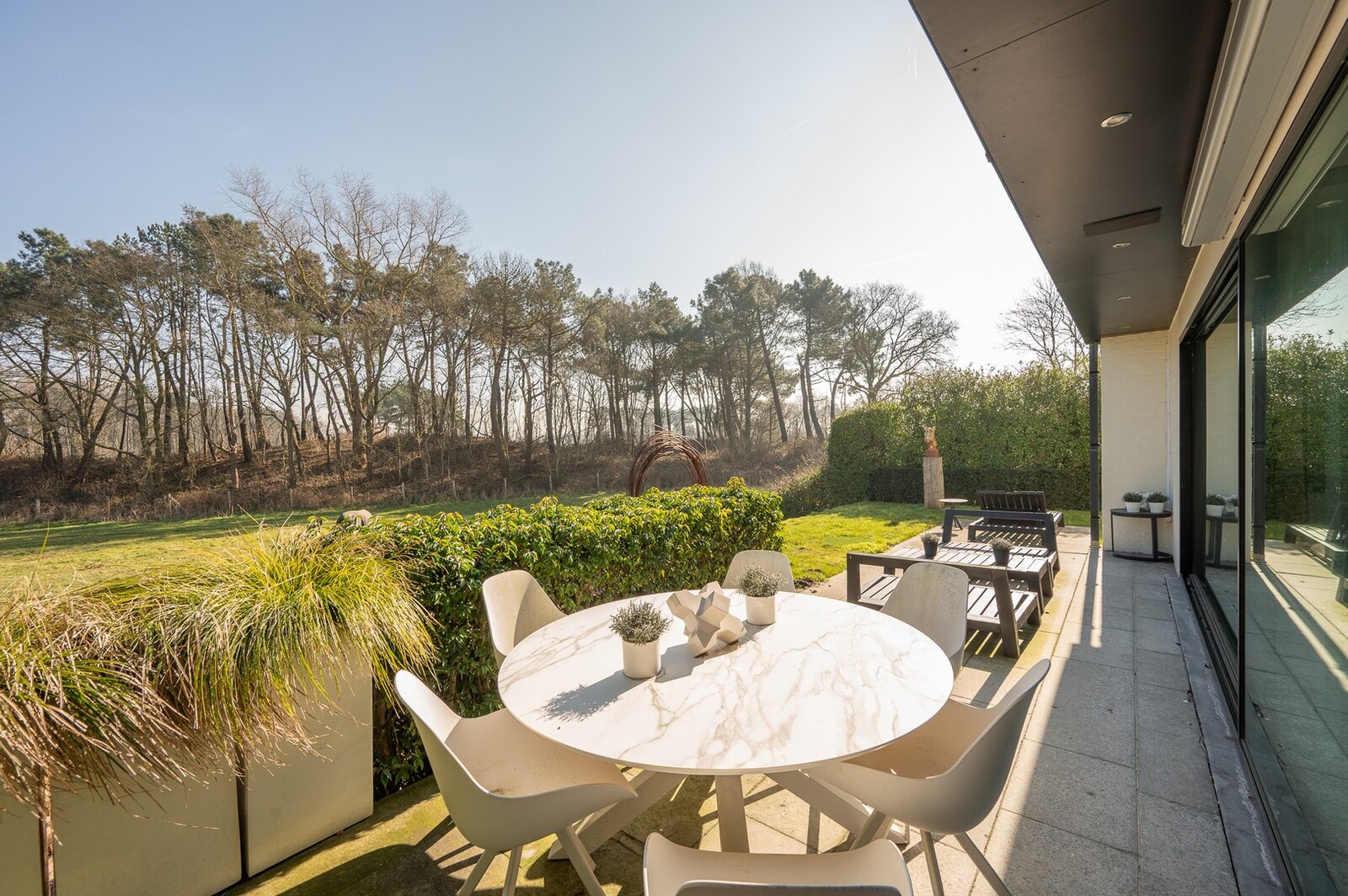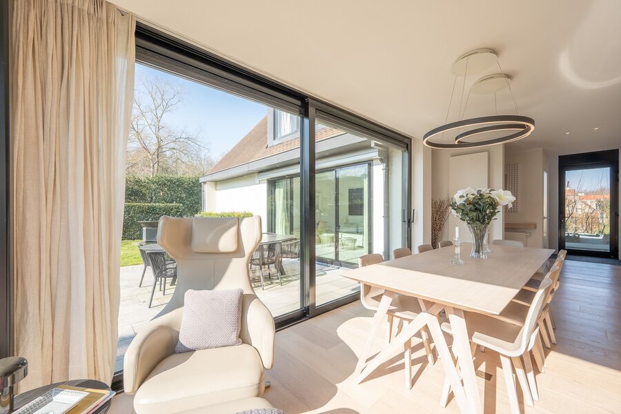Uitzonderlijke villa genietend van adembenemende groene zichten vakbij het Zwin en het Oosthoekplein. De villa is volledig hoogwaardig gerenoveerd in 2021. Indeling: inkomhal met gastentoilet en vestiaire. Heel lichtrijke living en eetkamer dankzij de grote raampartijen uitgevend op de open en beschermde zichten van de Zwinbossen, luxueus ingerichte open keuken met ontbijthoek. Master bedroom met uitzicht op de tuin, een ruime dressing en een ensuite badkamer met bad, inloopdouche, dubbele lavabo en toilet. Op de eerste verdieping: royale master slaapkamer met gashaard, ingemaakte kasten en zijn privatieve douchekamer, inclusief hammam met ligbank en apart toilet. Grote ramen met uitzicht op het groen. Een derde ruime slaapkamer met ensuite badkamer met inloopdouche, dubbele lavabo en toilet. De 4de volwaardige slaapkamer bevindt zich op niveau -1 met natuurlijk daglicht met badkamer alsook een fitness ruimte (met ingebouwde Technogym apparatuur) of vijfde slaapkamer. De villa is volledig onderkelderd inclusief een ruime garage voor 2 wagens en een golfkar/fietsen/wasplaats... Oprit voor meerdere wagens aan de villa welke afgesloten is met een automatische poort. Mogelijkheid om een zwembad te plaatsen.