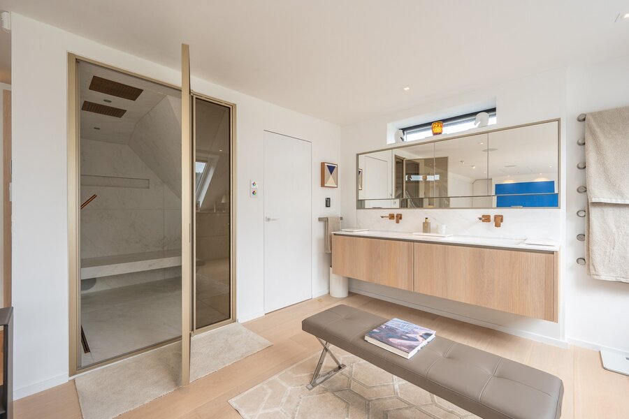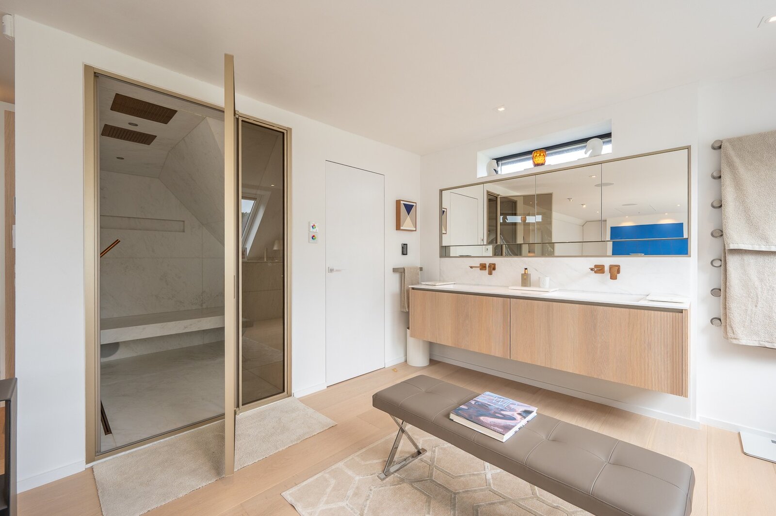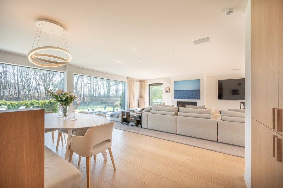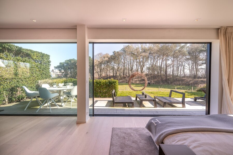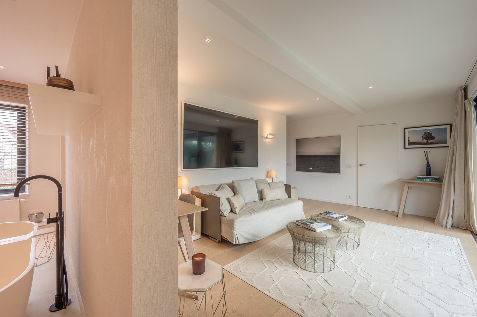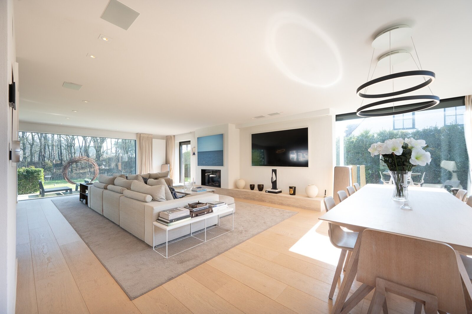 Uitzonderlijke villa genietend van adembenemende groene zichten vakbij het Zwin en het Oosthoekplein. De villa is volledig hoogwaardig gerenoveerd in 2021. Indeling: inkomhal met gastentoilet en vestiaire. Heel lichtrijke living en eetkamer dankzij de grote raampartijen uitgevend op de open en beschermde zichten van de Zwinbossen, luxueus ingerichte open keuken met ontbijthoek. Master bedroom met uitzicht op de tuin, een ruime dressing en een ensuite badkamer met bad, inloopdouche, dubbele lavabo en toilet. Op de eerste verdieping: royale master slaapkamer met gashaard, ingemaakte kasten en zijn privatieve douchekamer, inclusief hammam met ligbank en apart toilet. Grote ramen met uitzicht op het groen. Een derde ruime slaapkamer met ensuite badkamer met inloopdouche, dubbele lavabo en toilet. De 4de volwaardige slaapkamer bevindt zich op niveau -1 met natuurlijk daglicht met badkamer alsook een fitness ruimte (met ingebouwde Technogym apparatuur) of vijfde slaapkamer. De villa is volledig onderkelderd inclusief een ruime garage voor 2 wagens en een golfkar/fietsen/wasplaats... Oprit voor meerdere wagens aan de villa welke afgesloten is met een automatische poort. Mogelijkheid om een zwembad te plaatsen.