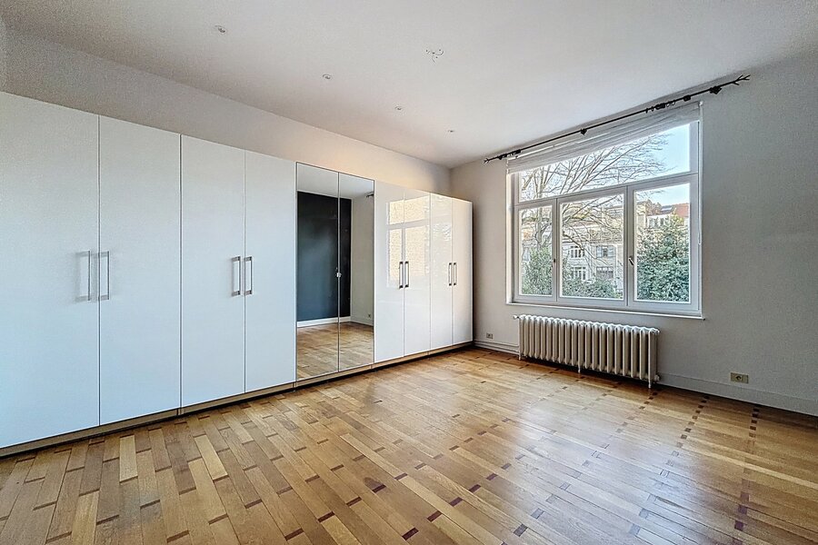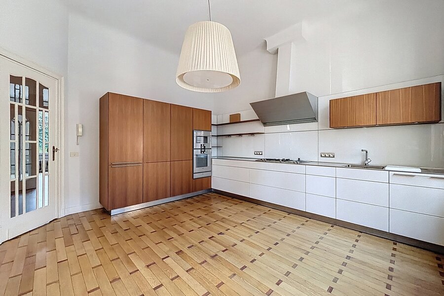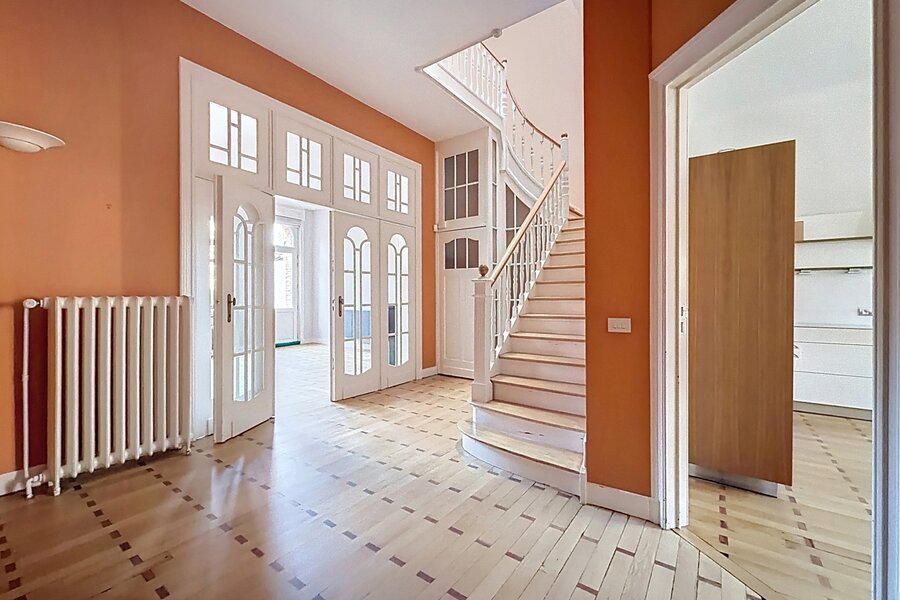 Close to Place Georges Brugmann and the prestigious Avenue Molière, a sumptuous mansion renovated in 2022 with a total area of ± 359 m² built in 1910. It comprises a vast double entrance hall, a bright and spacious living room (± 32.80 m²), a super equipped kitchen (± 22.20 m²), a night hall, 5 beautiful bedrooms (± 23.40 m², ± 23.65 m², ± 12 m², ± 21.40 m² and ± 22 m²), a dressing area, 1 bathroom and shower room and 1 shower room. Beautiful double terrace (approximately 17.50 m² and 36.80 m²) overlooking a lovely city garden (approximately 110 m²). Cellars, laundry room, and garage on the first basement level. High ceilings, double glazing, original parquet flooring, and quality materials. Garden maintenance contract (€215/month). Energy Performance Certificate (EPC) rating E-. Don't miss out! Contact Vaneau Lecobel today!