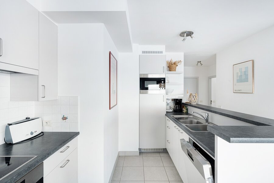 Hoekappartement op de Zeedijk met open zicht, gelegen op een gegeerde locatie aan zee. Dankzij de hoekligging geniet het appartement van een aangename lichtinval en een ruimtelijk gevoel, met een prachtig zicht op de omgeving en de zee. De leefruimte sluit harmonieus aan op het uitzicht en vormt een aangename plek om te verblijven. Het appartement beschikt over twee volwaardige slaapkamers. Verder is er een apart gastentoilet en een praktische bergruimte met mogelijkheid tot aansluiting van een wasmachine. De ruime badkamer is ingericht met een ligbad voorzien van douchefunctie. Daarnaast beschikt het appartement over een privatieve kelder. In de residentie is er bovendien de mogelijkheid tot aankoop van een autostaanplaats. Een comfortabel hoekappartement op de Zeedijk, ideaal als vaste woonst of tweede verblijf aan zee.