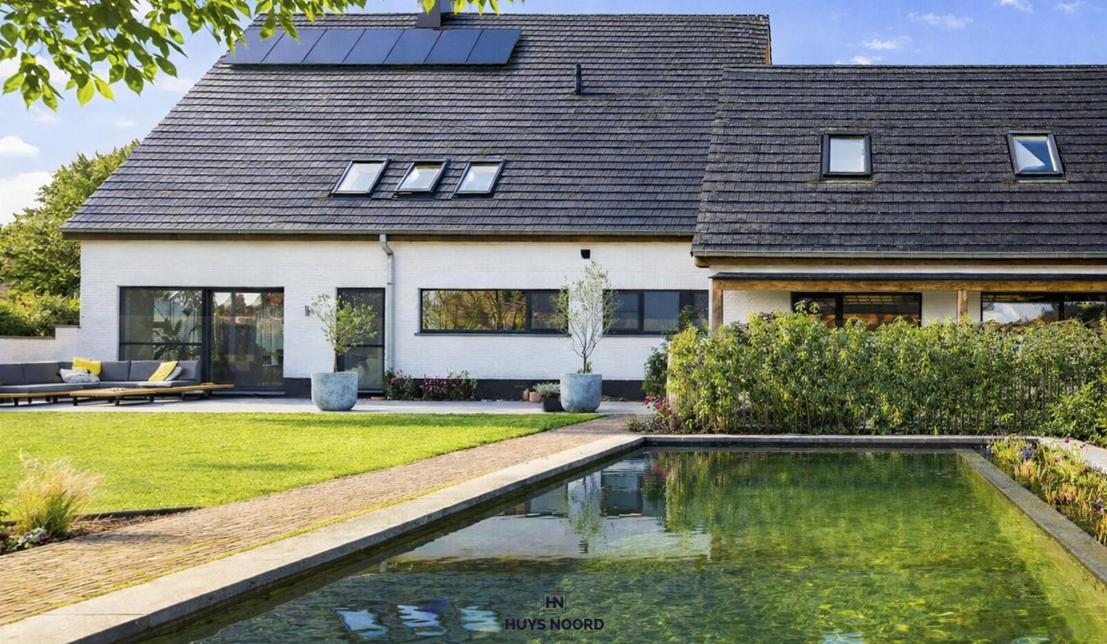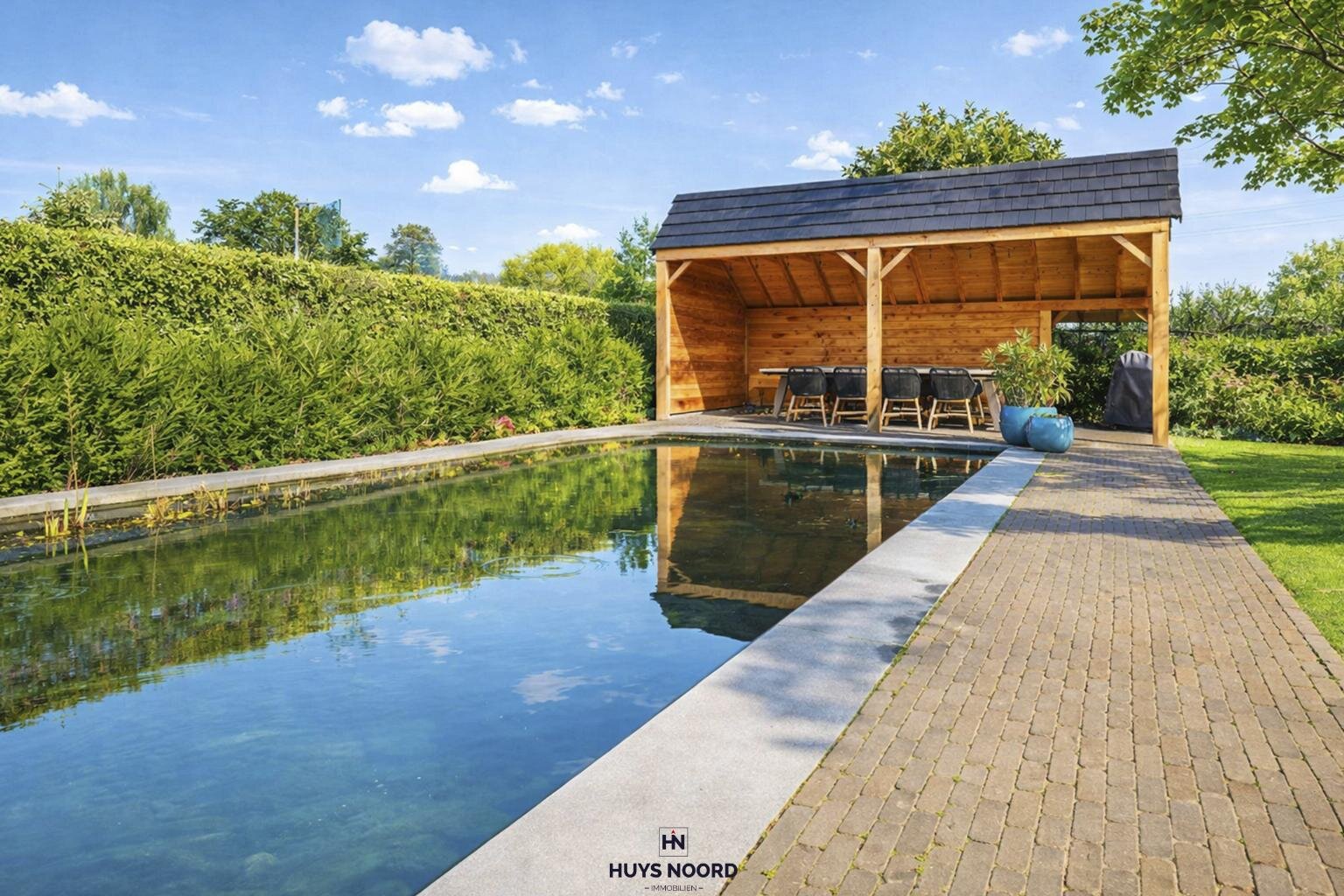 Outdoor living is equally exceptional, with a beautifully landscaped garden including a natural swimming pond, a covered terrace, and a unique outdoor experience throughout the year. Peace and privacy are guaranteed.