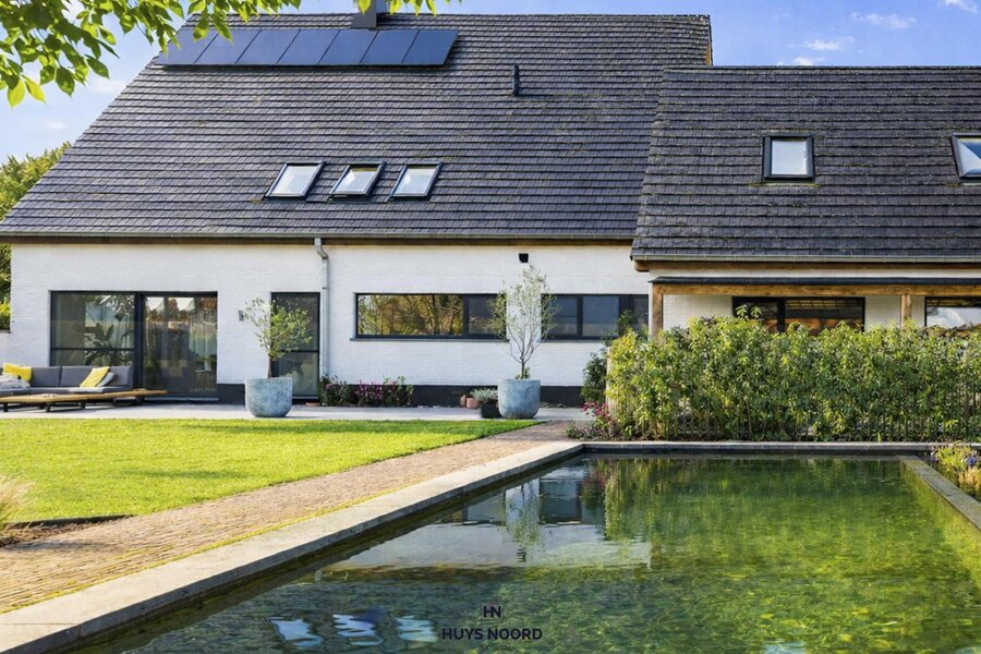 Located in the charming rural area of Moerkerke, ideally situated between Knokke and Bruges, this stunning, thoroughly renovated villa perfectly combines luxury, space and tranquillity. With an energy label A, the property is both stylish and future-proof.