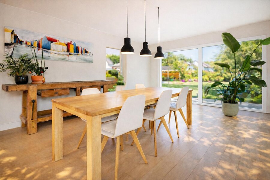 Further features include a double garage, a large driveway, as well as solar panels and a solar boiler, enhancing both comfort and sustainability.