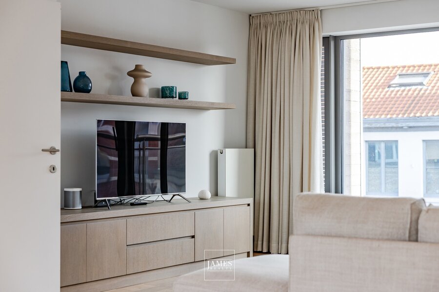 A parking space (40.000€) and two private cellars complete the ensemble. Low common charges (± €700/quarter) reflect a well-managed co-ownership.