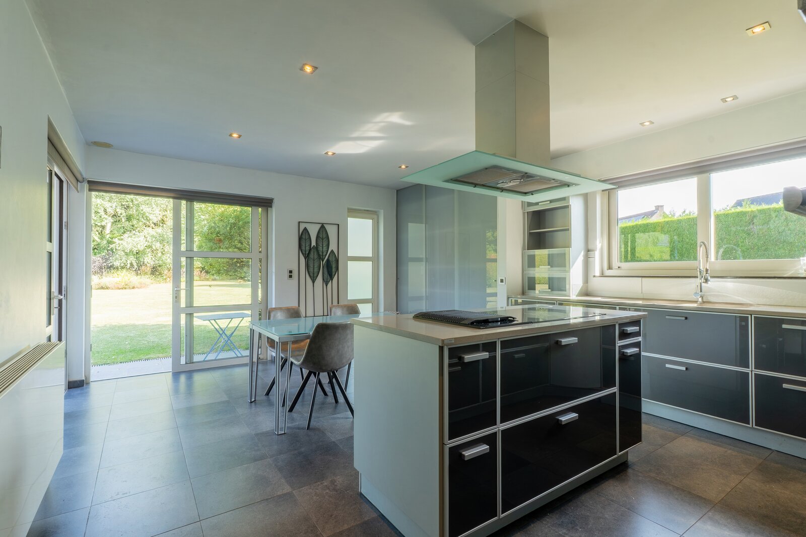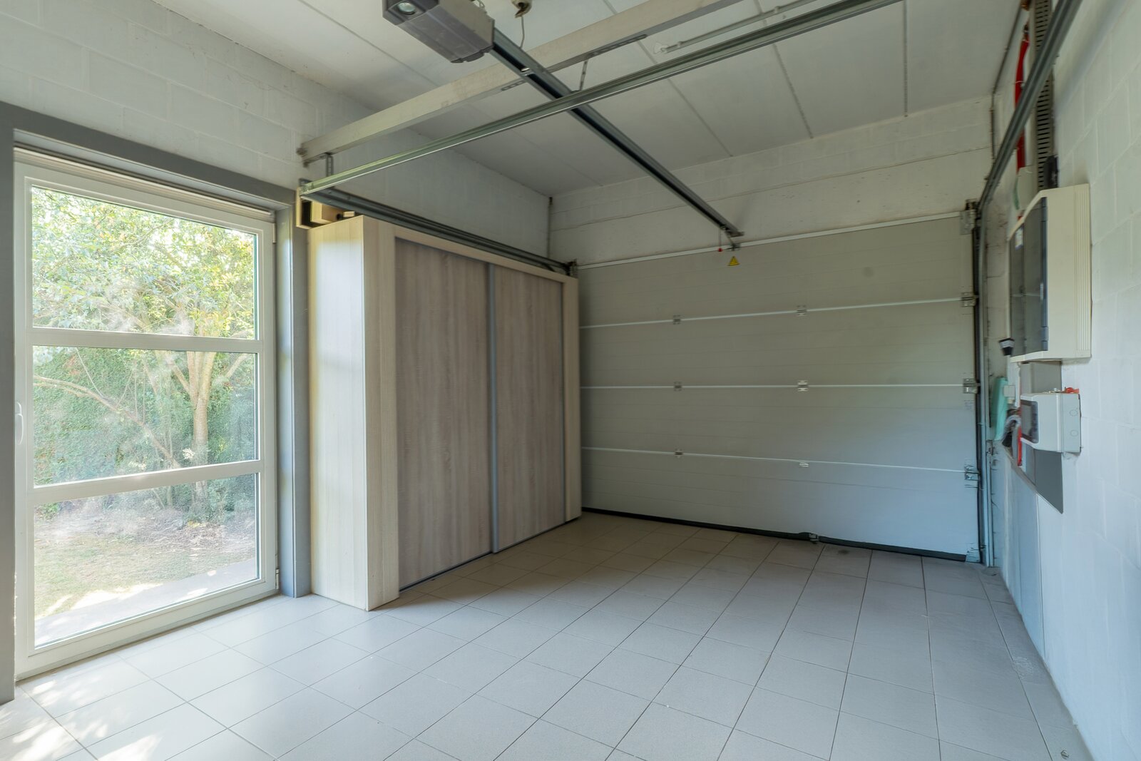 Outside, there is a large terrace and a landscaped, fully fenced garden that offers privacy. At the front, several parking spaces are secured with an electric gate.