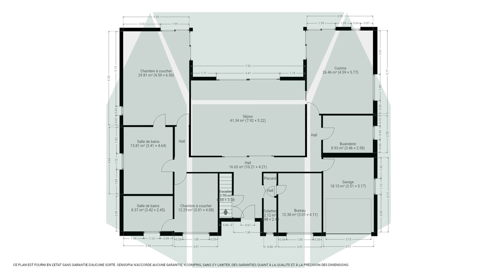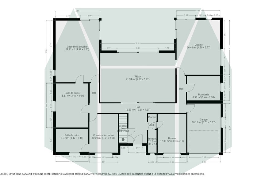 The right wing includes a laundry room, a garage and an office that can also be used as an extra bedroom.