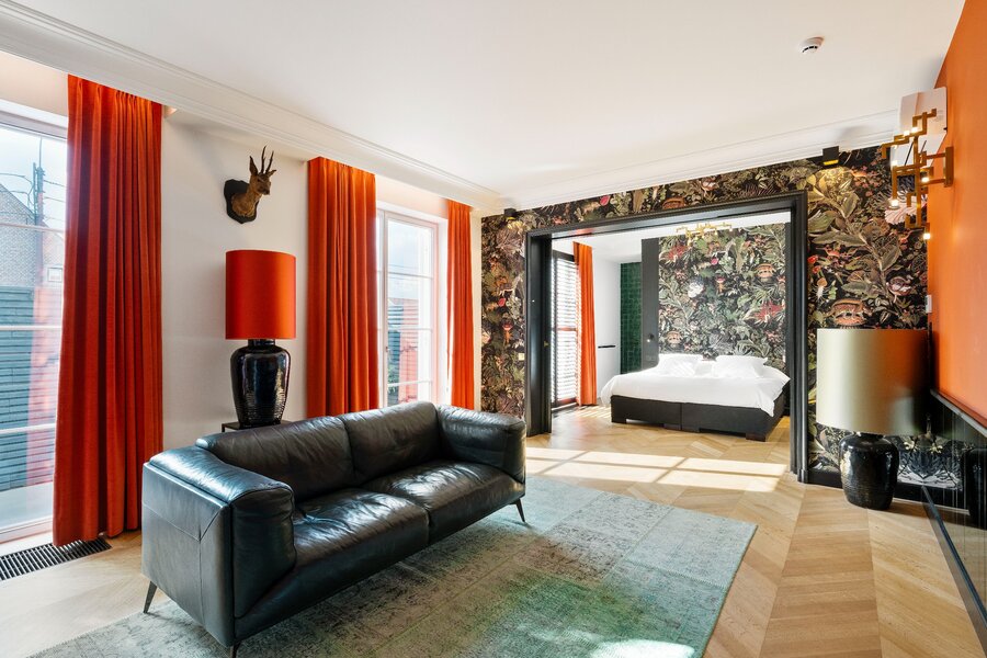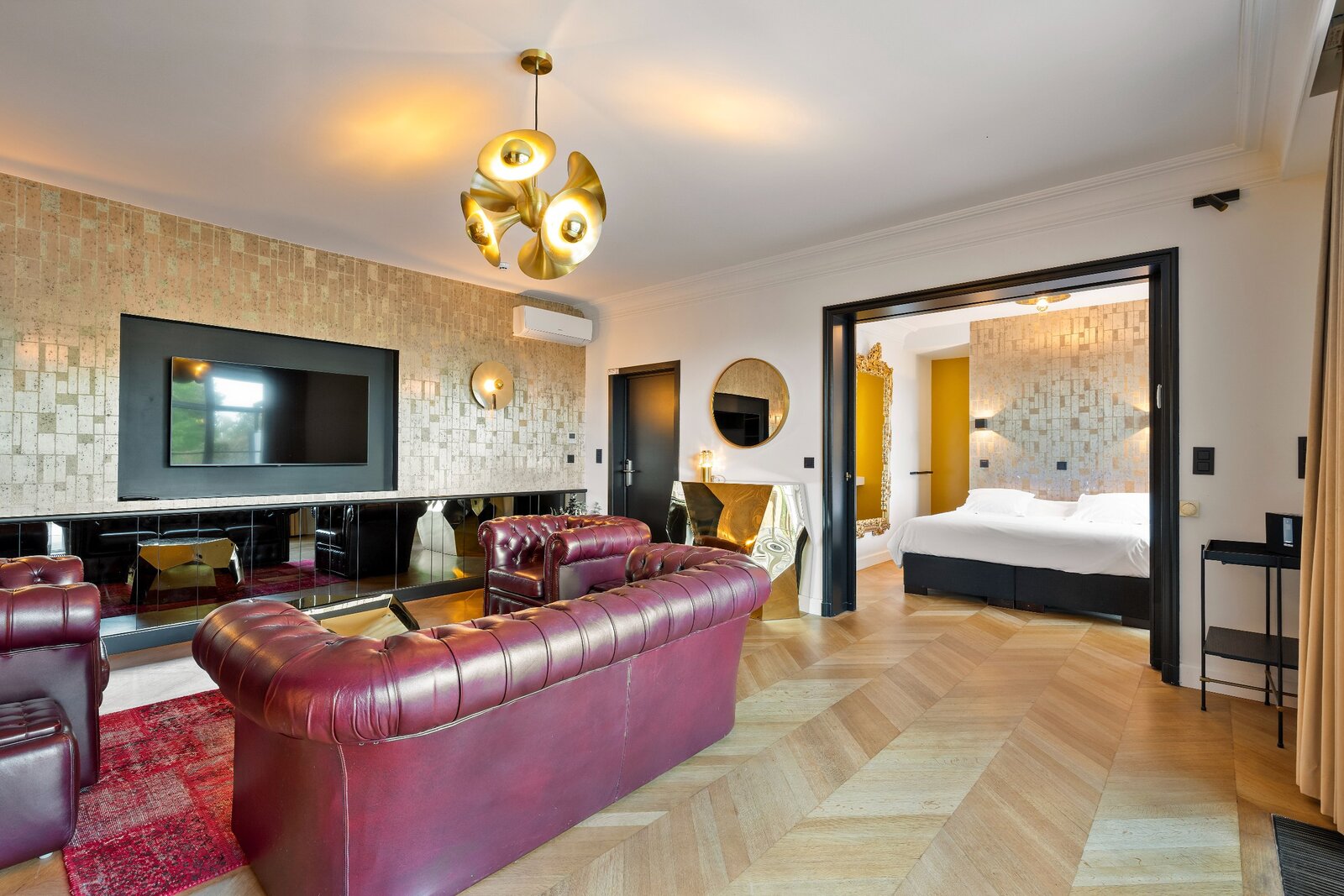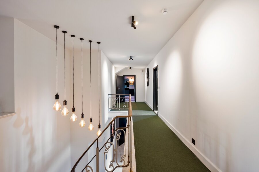 De bovenverdieping telt vijf slaapkamers, waarvan vier beschikken over een en-suite badkamer. De hoofdslaapkamer is bijzonder ruim en beschikt over een mezzanine, wat zorgt voor extra ruimte en karakter.