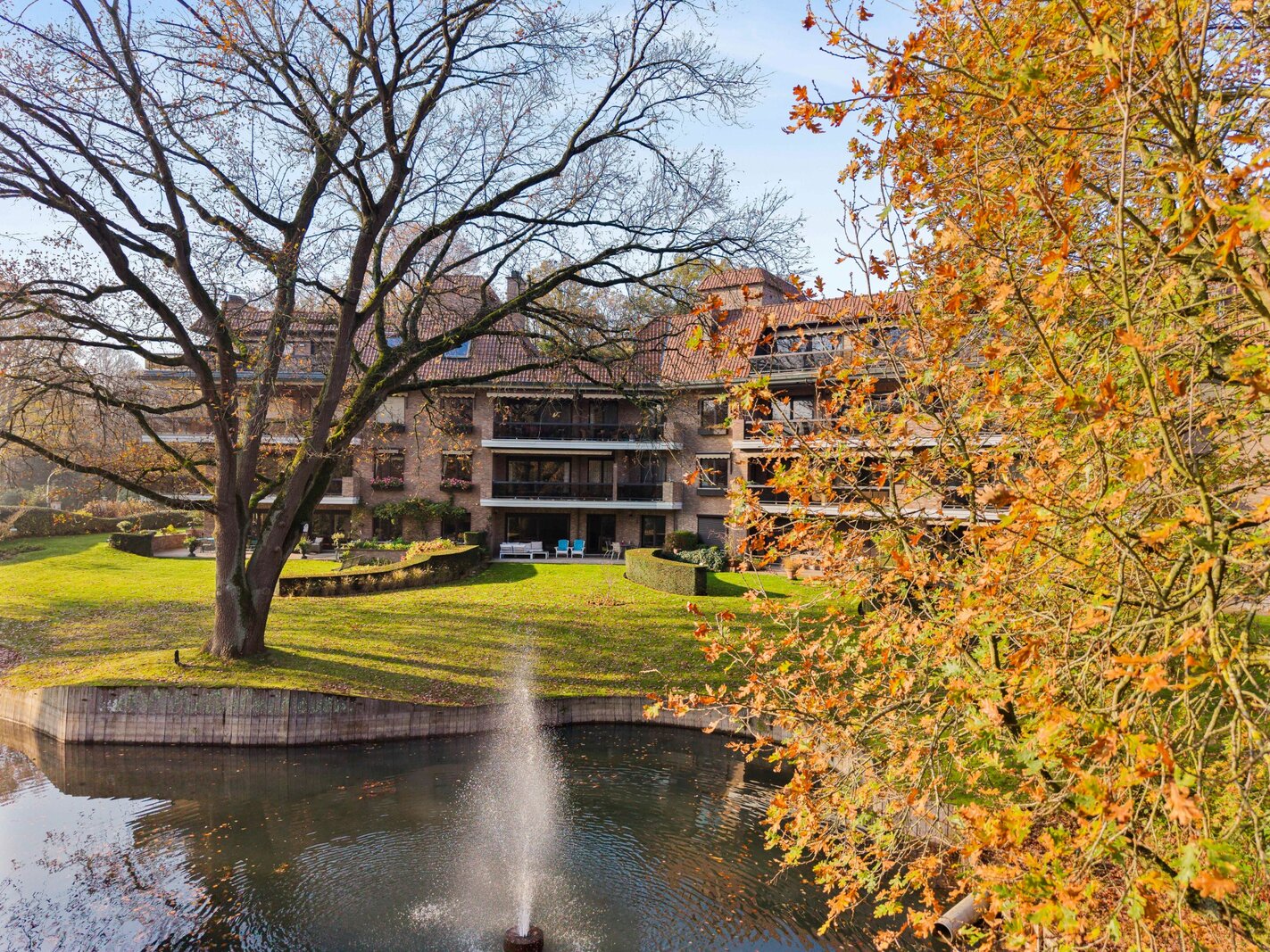 Dit uitzonderlijk ruime en instapklare gelijkvloers appartement biedt een hoogwaardige afwerking, een mooie lichtinval en een zeer praktische indeling. Met een bewoonbare oppervlakte van ca. 200 m², een groot zonnig terras en toegang tot de prachtig aangelegde parktuin met vijver vormt dit een unieke woonbeleving op toplocatie. Het appartement beschikt over 3 slaapkamers, 2 badkamers, een aparte wasplaats en extra bergruimte in de kelder, inclusief garageplaatsen.