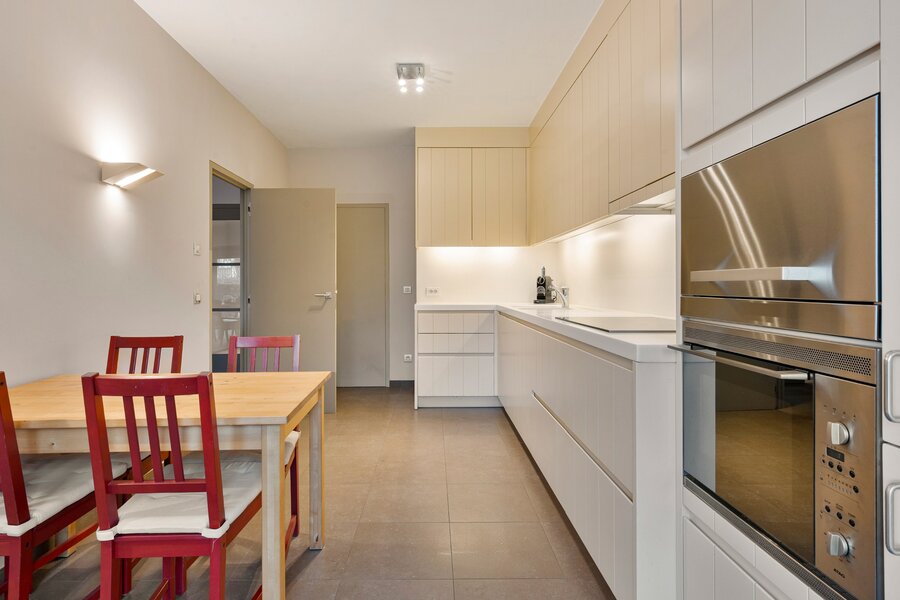 De luxueus ingerichte keuken is voorzien van kwalitatieve toestellen zoals een ingebouwde vaatwasser, koelkast, diepvriezer, combi-oven en stoomoven.