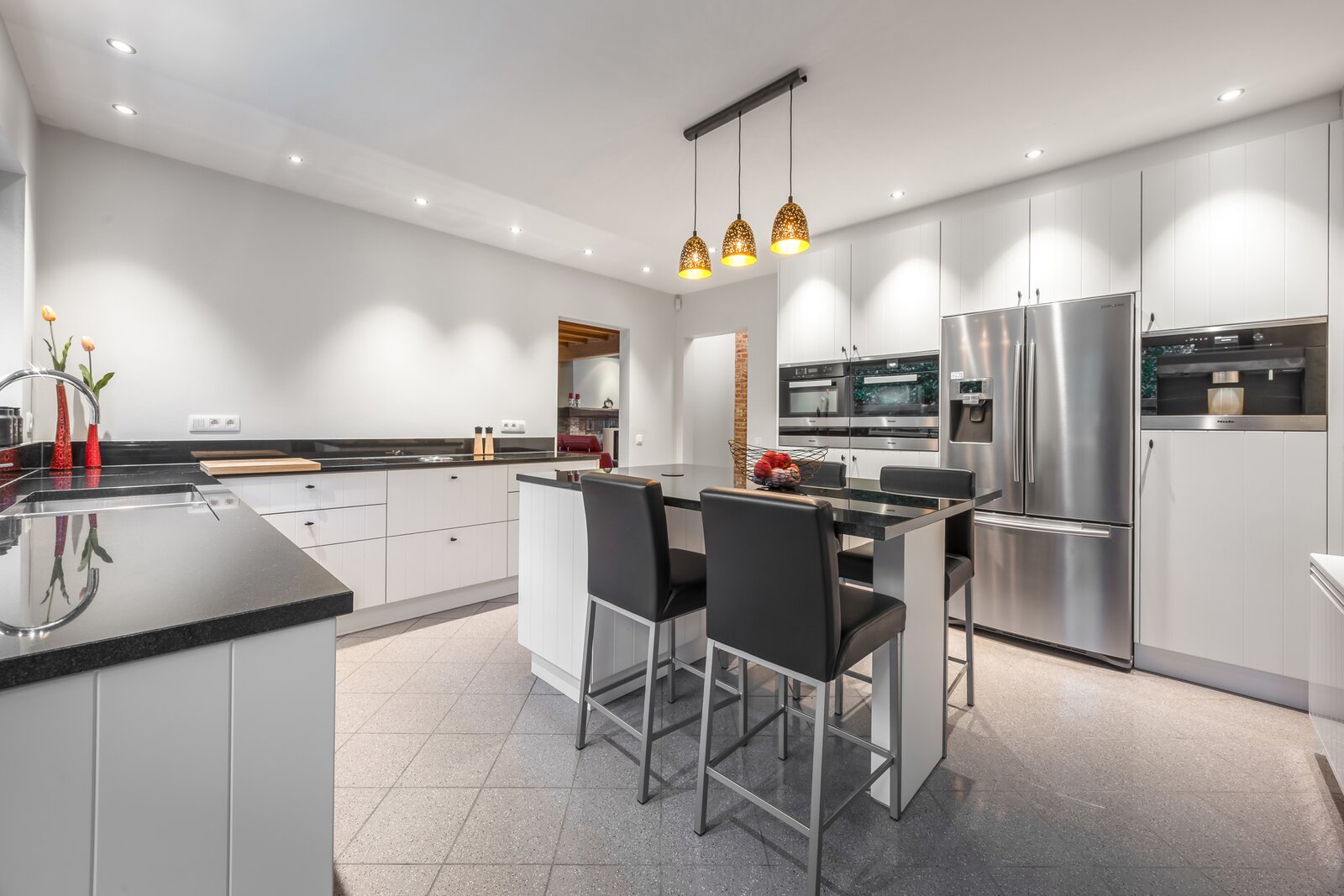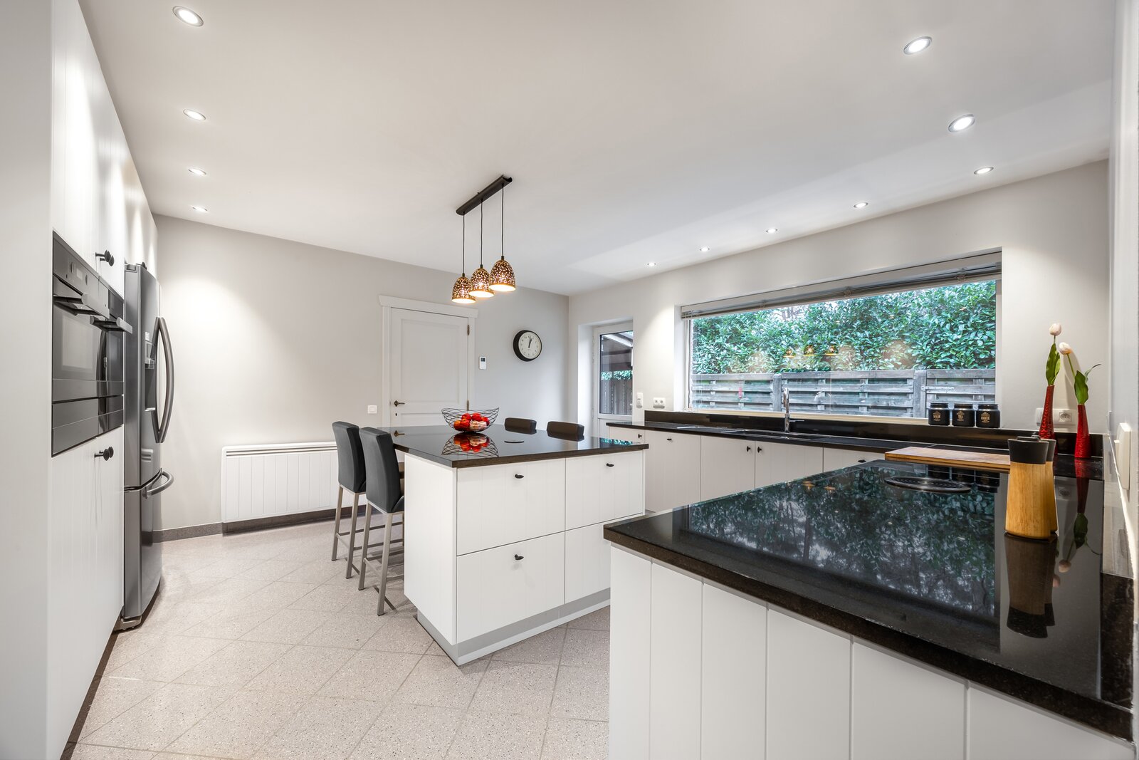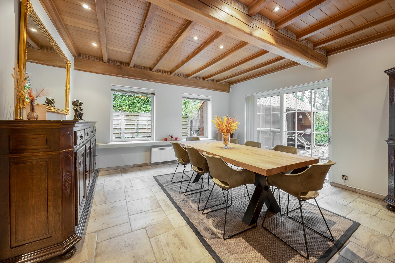 De gelijkvloerse verdieping biedt alle woonvoorzieningen en wordt gekenmerkt door een aangename lichtinval die zorgt voor een open en warme sfeer in de leefruimtes. Dankzij de doordachte indeling geniet u hier van optimaal wooncomfort.