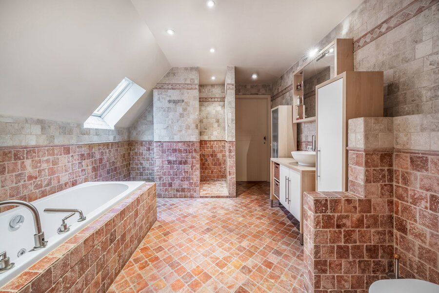 Deze ruime en instapklare woning combineert comfort, licht en tal van mogelijkheden. Op de bovenverdieping bevinden zich drie volwaardige slaapkamers, aangevuld met een praktische bureauruimte en een aparte dressing. De badkamer is volledig uitgerust met zowel een ligbad als een douche, ideaal voor elk gezinstype.