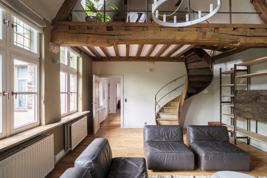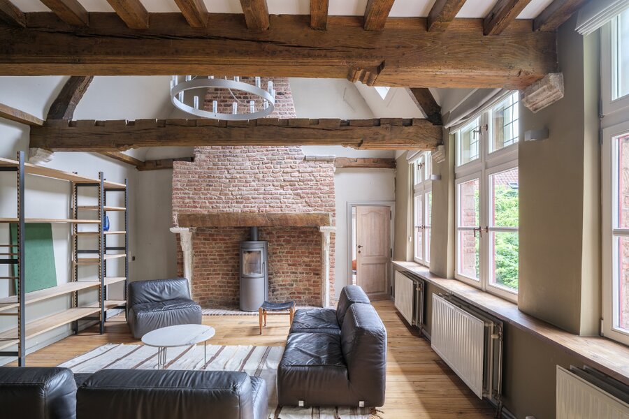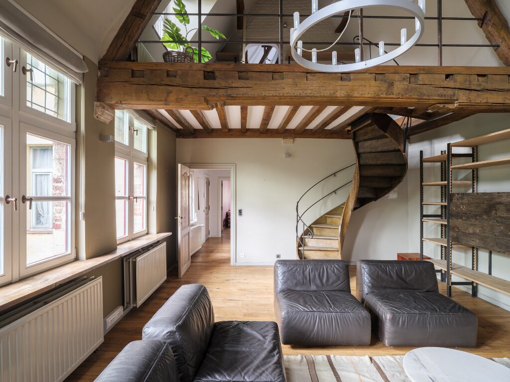 In addition to its exclusive location in the Patershol district, the house offers several impressive living and dining areas, bedrooms, and leisure spaces spread across different levels.