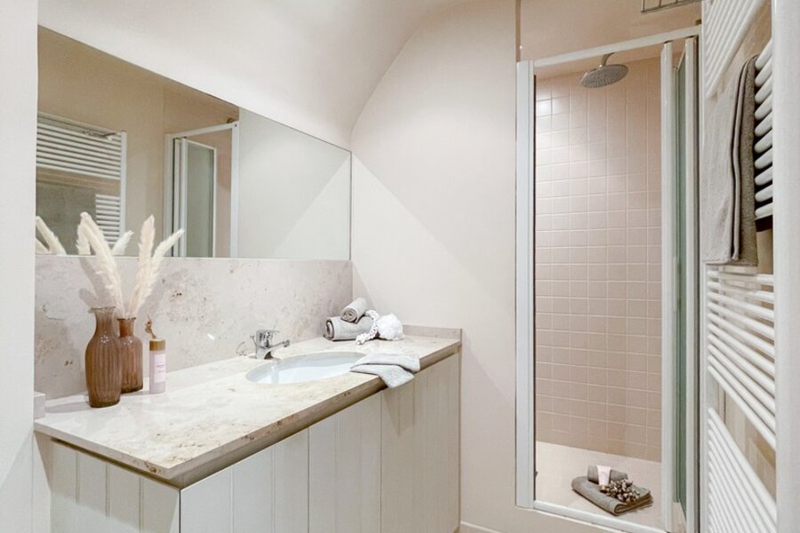 Le hall de nuit / coin TV / espace bureau est situé au 1er étage. La chambre principale dispose d'une salle de bains attenante, composée d'une douche spacieuse, d'un lavabo et de toilettes. Placards intégrés. Les chambres 2 et 3 disposent également de nombreux placards intégrés. Il y a une salle de bains séparée avec une douche spacieuse et un lavabo. Toilettes séparées.