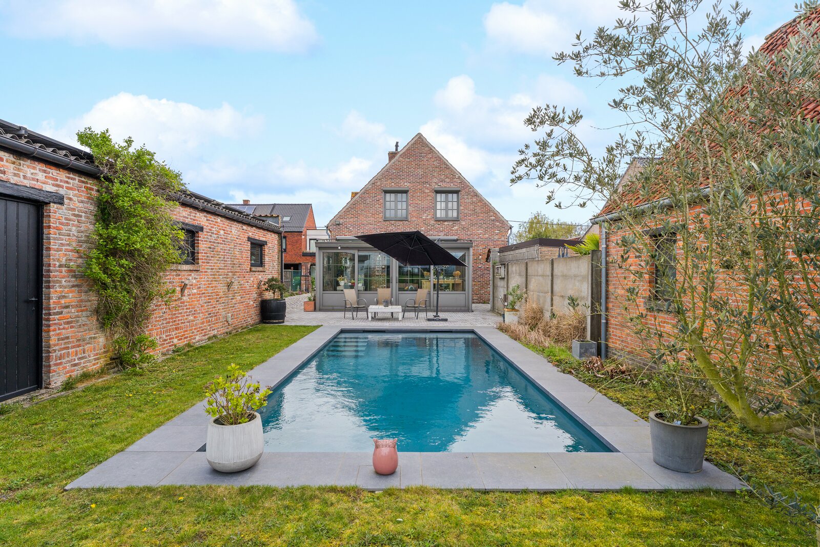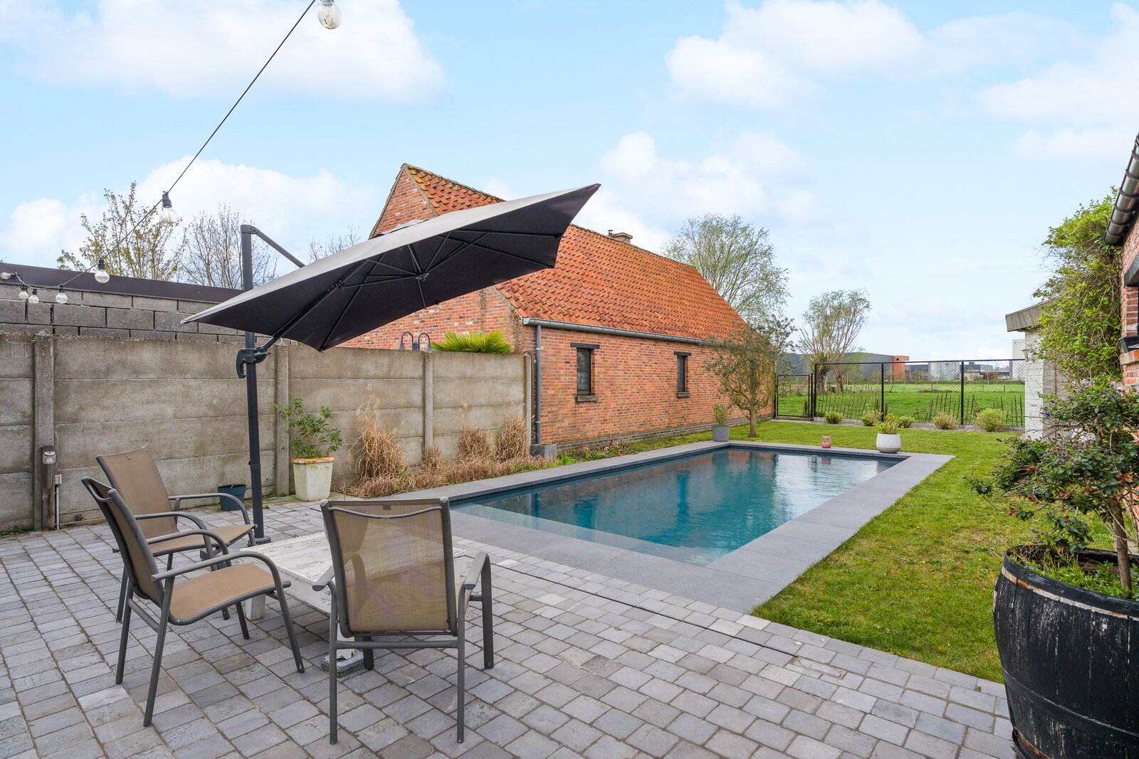 Buiten geniet je volop van het verwarmde zwembad (warmtepomp), perfect voor lange zomerdagen in alle privacy.