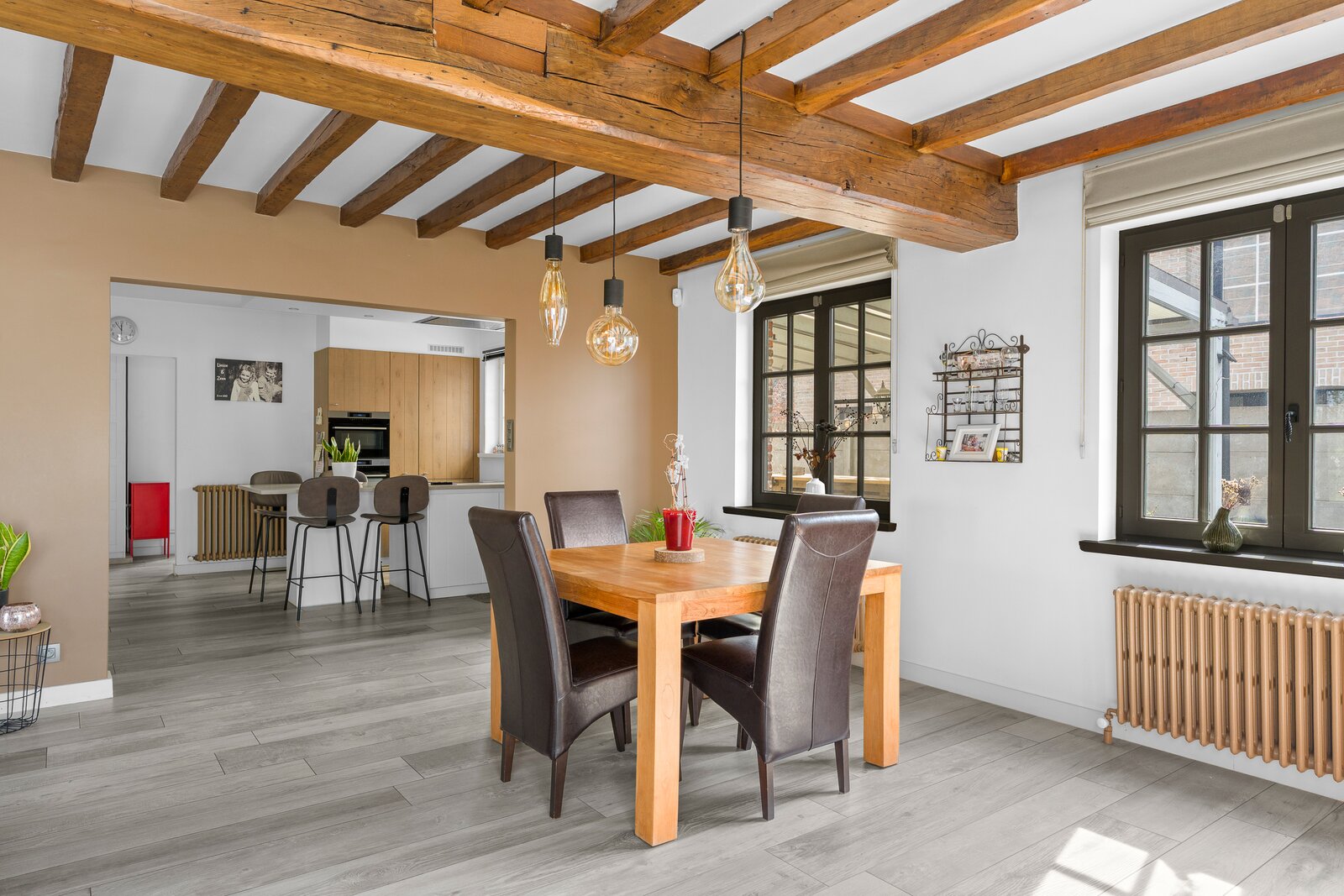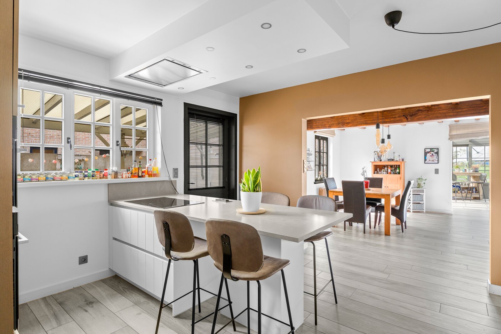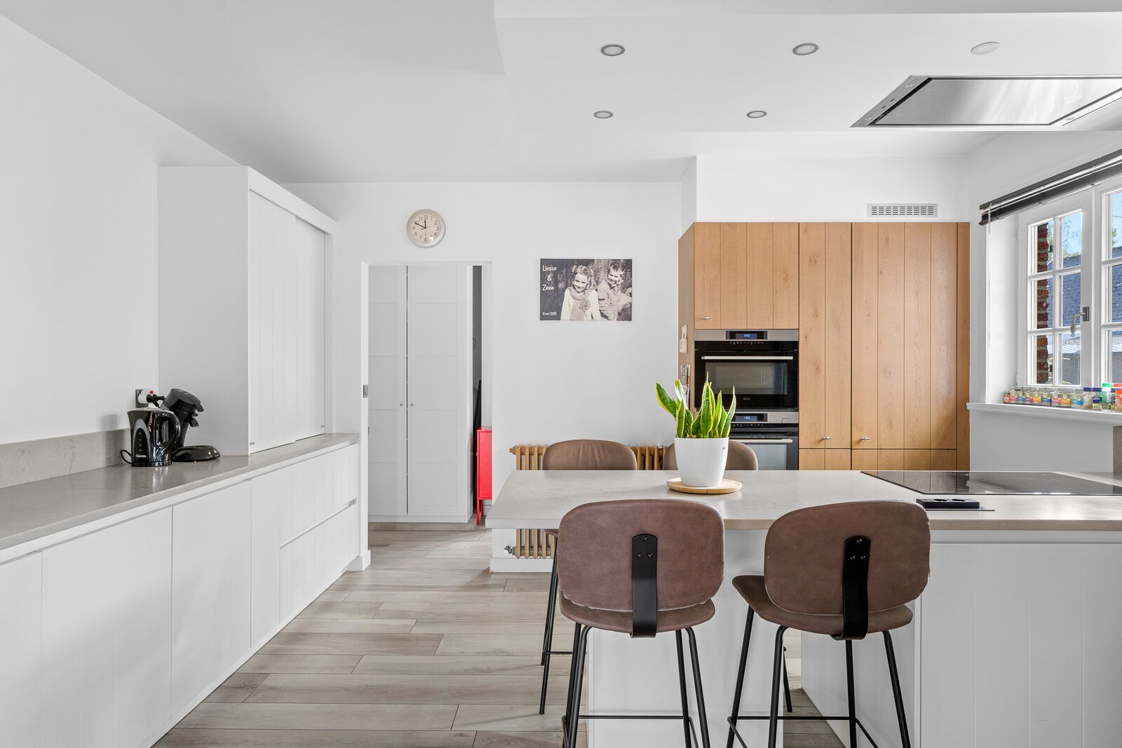 Deze instapklare woning werd met veel zorg en oog voor detail recent gerenoveerd en biedt alles wat je zoekt voor hedendaags wonen. De lichtrijke leefruimtes creëren meteen een aangenaam gevoel van openheid, terwijl de rustige ligging en het vrije zicht zorgen voor een unieke woonbeleving. De moderne, volledig uitgeruste keuken vormt het hart van de woning en sluit aan op de ruime leefruimte. Voordeel van een ruime berging vlakbij de keuken. Vanuit de keuken heb je directe toegang tot een tweede terras – ideaal voor een ontspannen ontbijt in de ochtendzon.