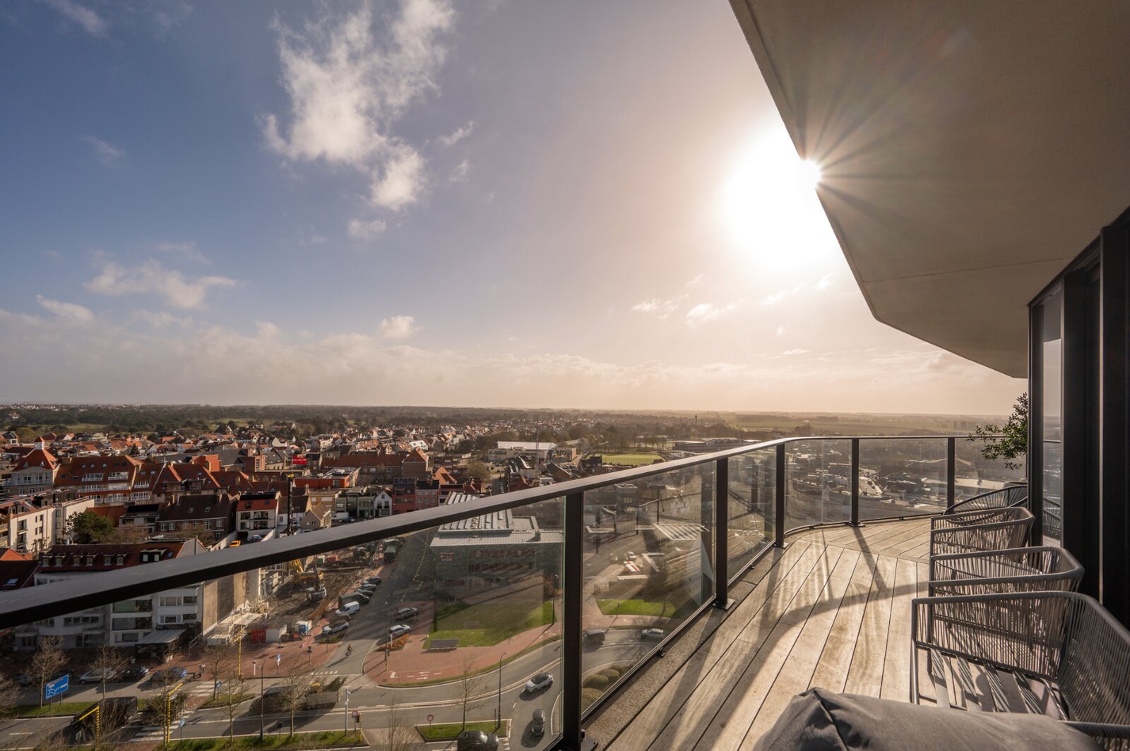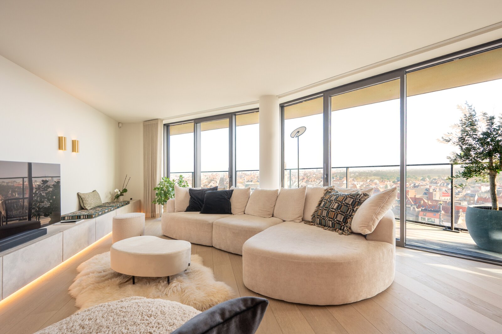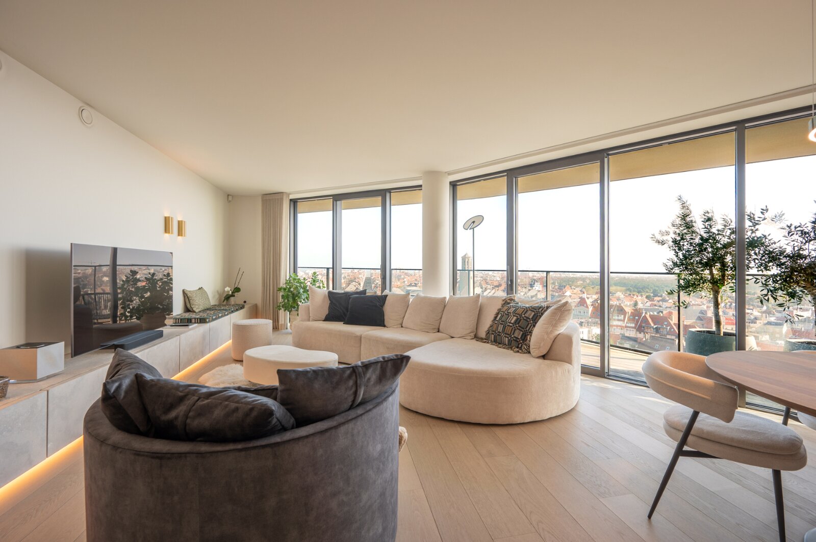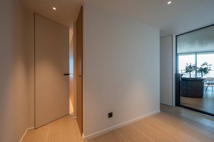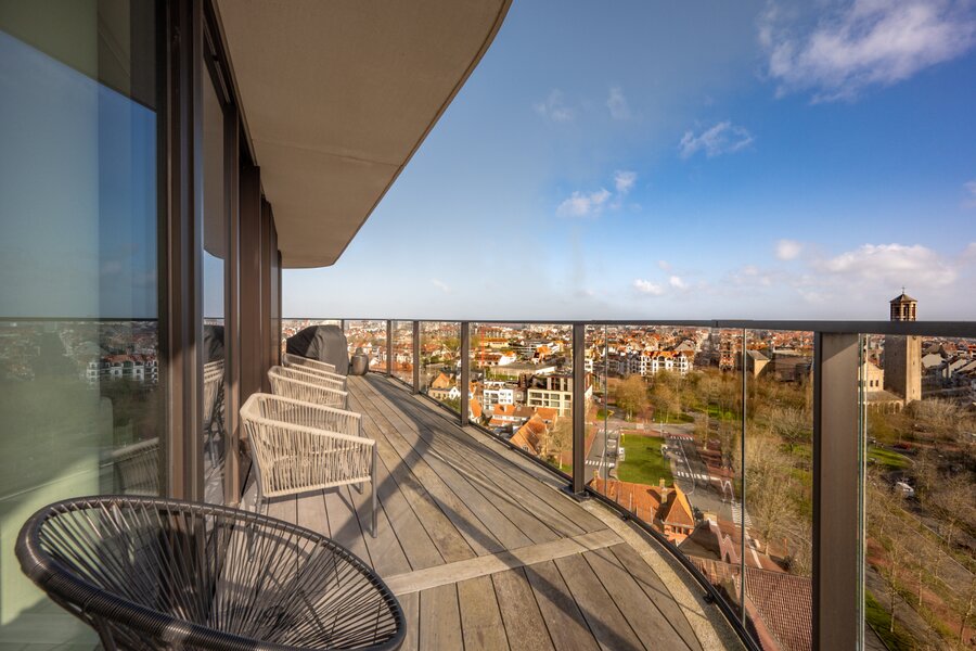 New-build apartment with high-end finishes, located on the 12th floor of “The Tower”, enjoying panoramic views over Knokke, the golf course and the sea.