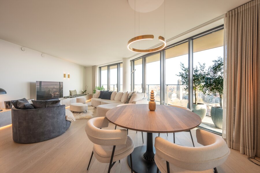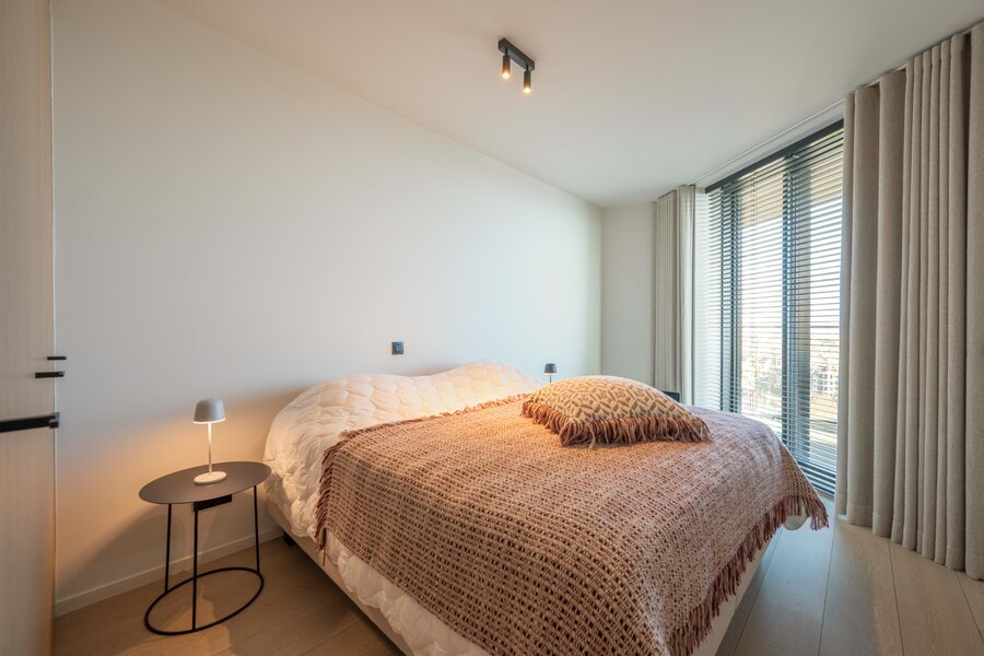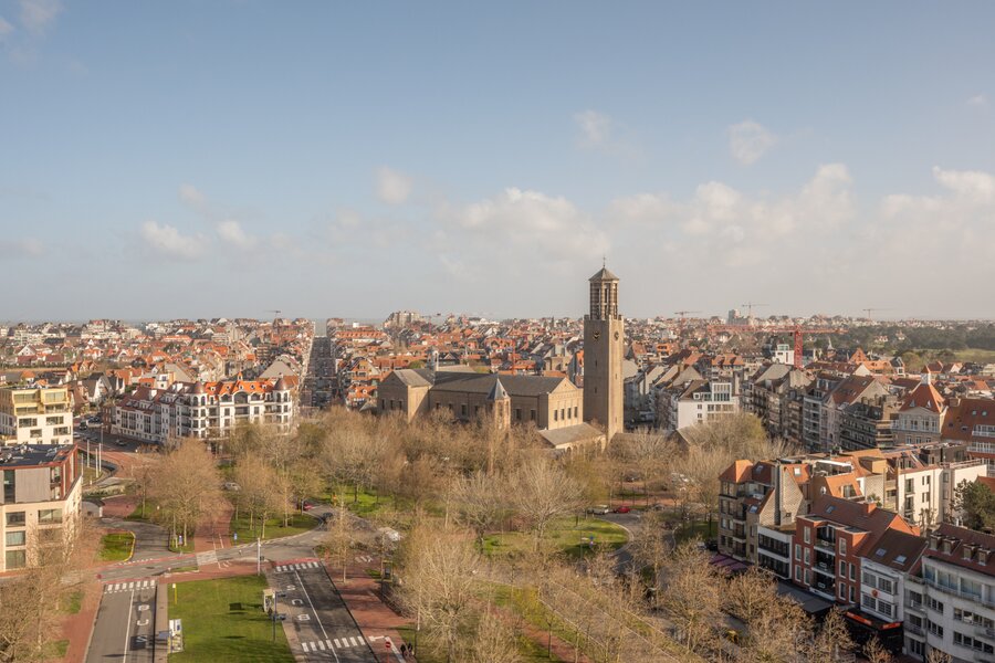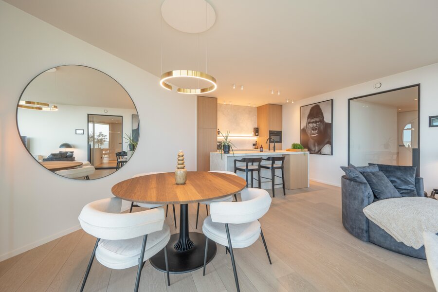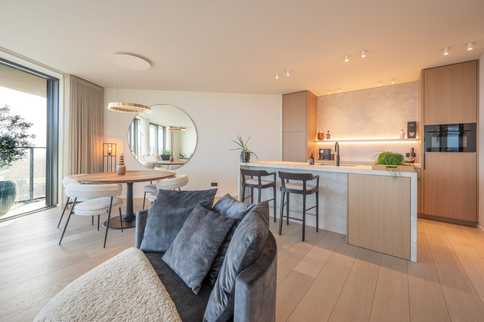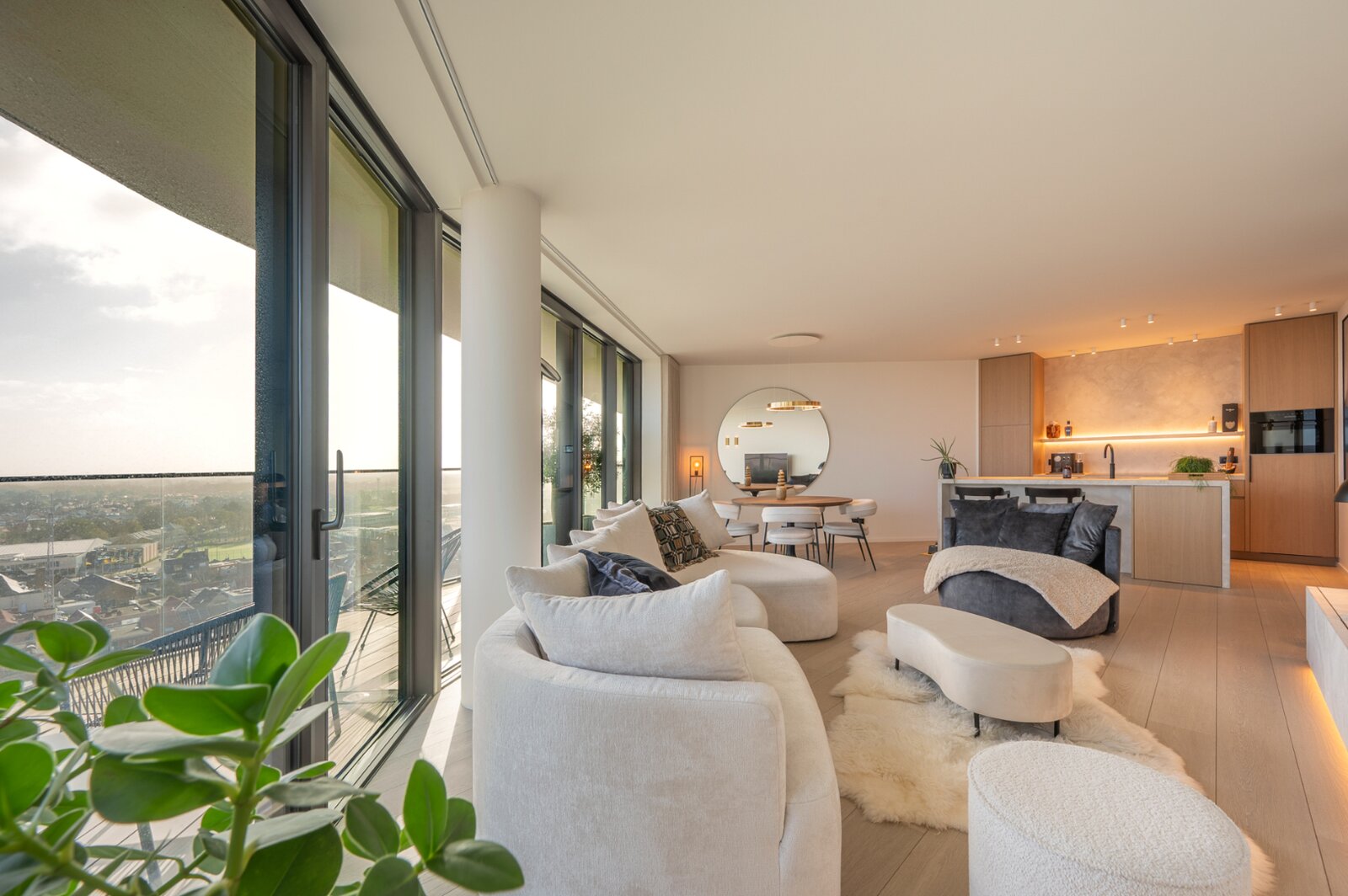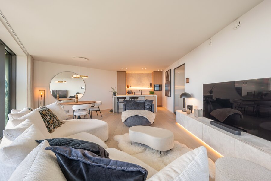 New-build apartment with high-end finishes, located on the 12th floor of “The Tower”, enjoying panoramic views over Knokke, the golf course and the sea.