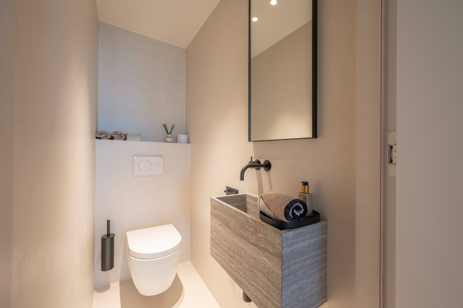 Possibility to purchase a spacious garage box with charging station. High-end finishes including underfloor heating/cooling via geothermal energy, alarm system, home automation, etc.