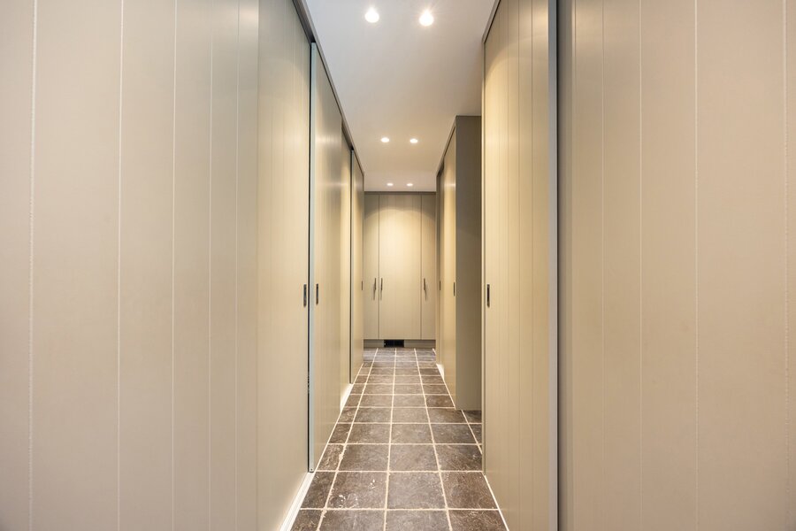 Inkomhal 18m² op kerkdal met vestiairekast, gastentoilet en handenwasser.
