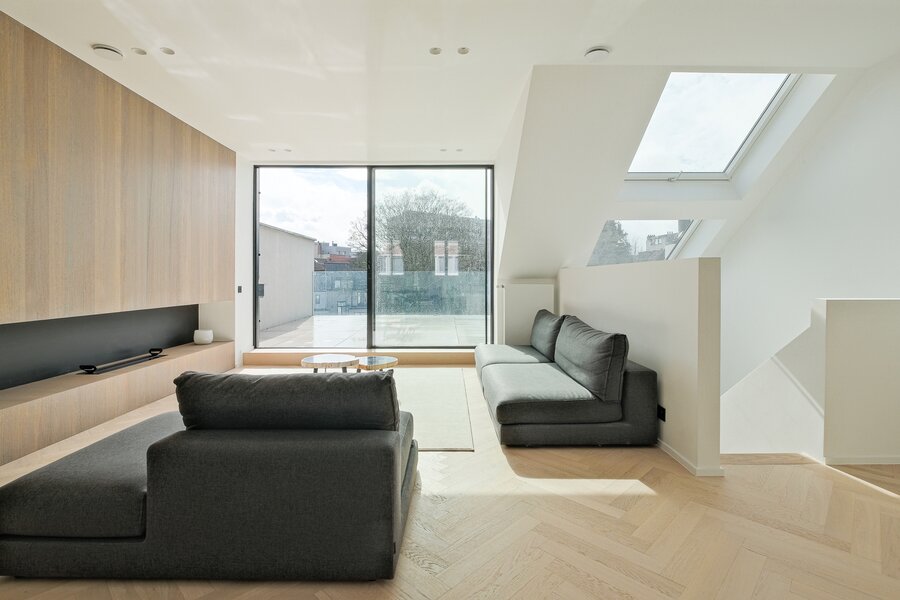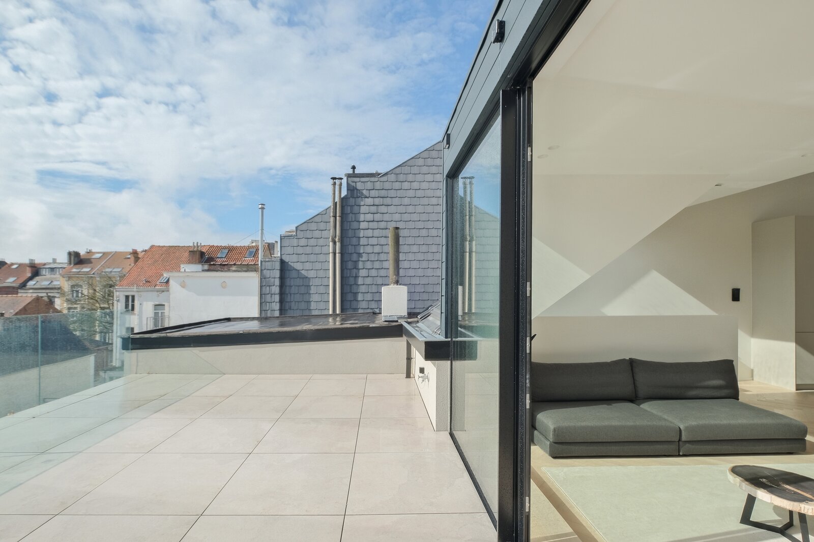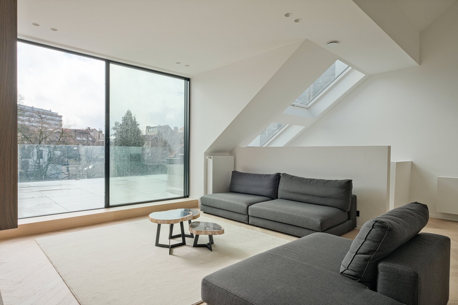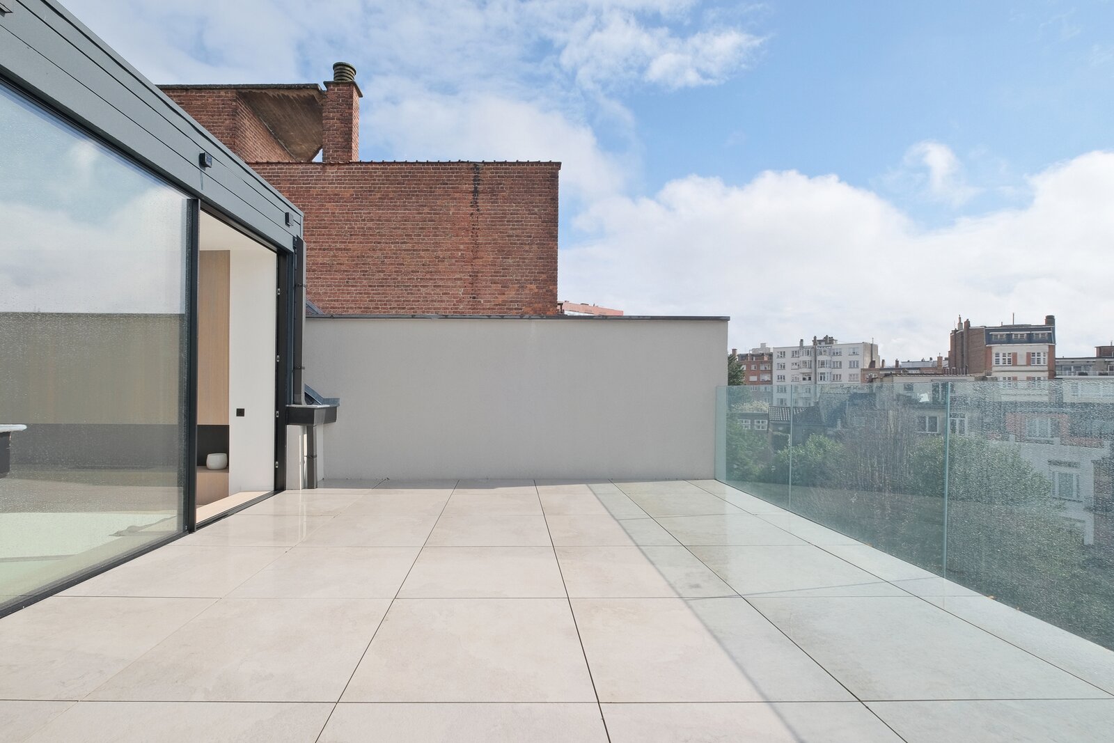In the immediate vicinity of Avenue Louise and La Cambre Abbey, a superb 192 sq m (gross floor area) duplex penthouse with a magnificent 37 sq m terrace is located in a period building completely renovated in 2025. It comprises: a spacious and bright living room with an open-plan kitchen of approximately 64 sq m opening onto a magnificent southwest-facing terrace with no overlooking neighbors; a bedroom of approximately 14 sq m with an en-suite bathroom; an office space of approximately 10 sq m; a bedroom of approximately 10.4 sq m with an en-suite shower room; a master suite of approximately 17 sq m with a dressing room and en-suite shower room; and a laundry room. A cellar, bicycle storage, private elevator, individual heating, and the option to rent a garage opposite are also included. Energy Performance Certificate (EPC): B