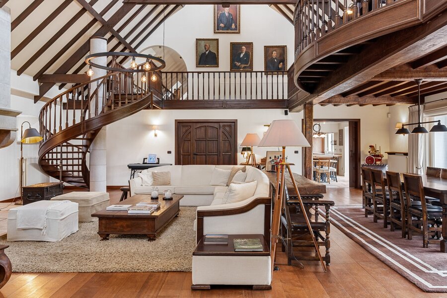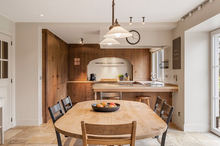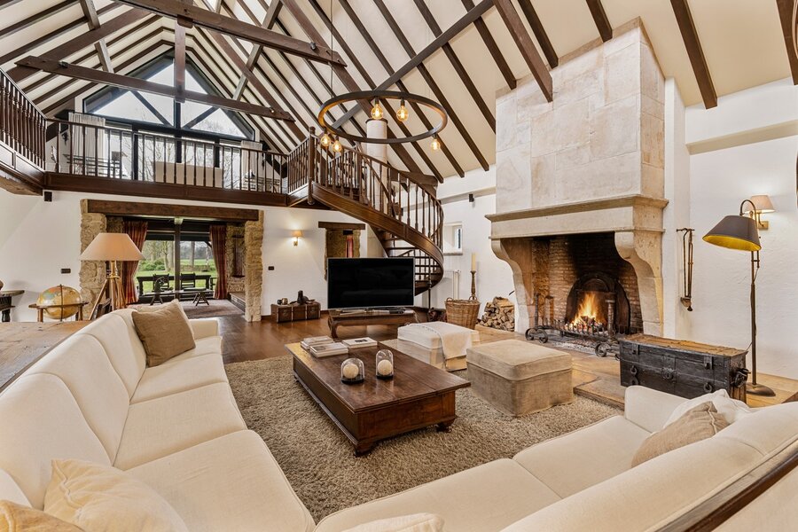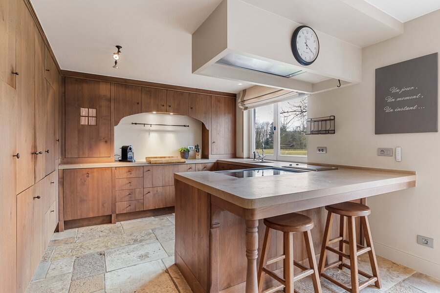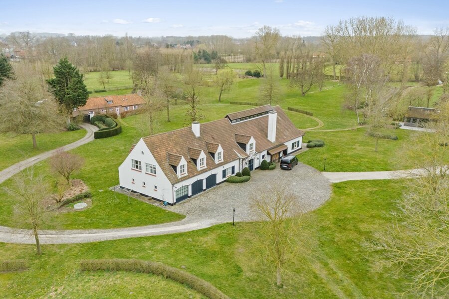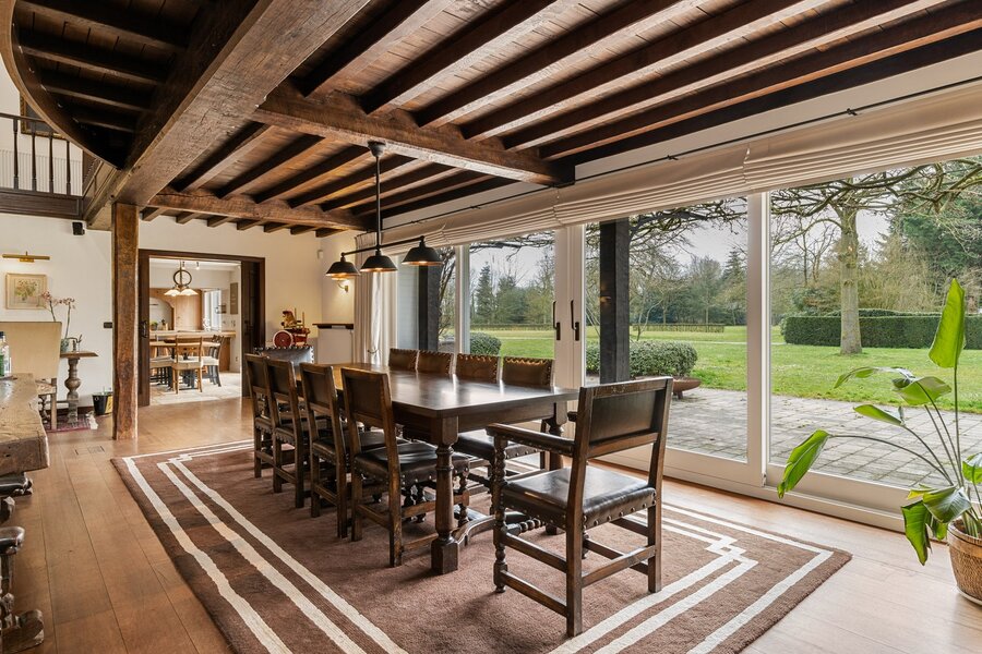 De imposante oprijlaan leidt u naar de hoofdwoning, waar authenticiteit en grandeur hand in hand gaan. De woning werd gebouwd met respect voor de authentieke charme van een landhuis, wat tot uiting komt in de prachtige houten balken en warme materialen. Met een bruikbare oppervlakte van 735 m² biedt deze woning een royale woonervaring.