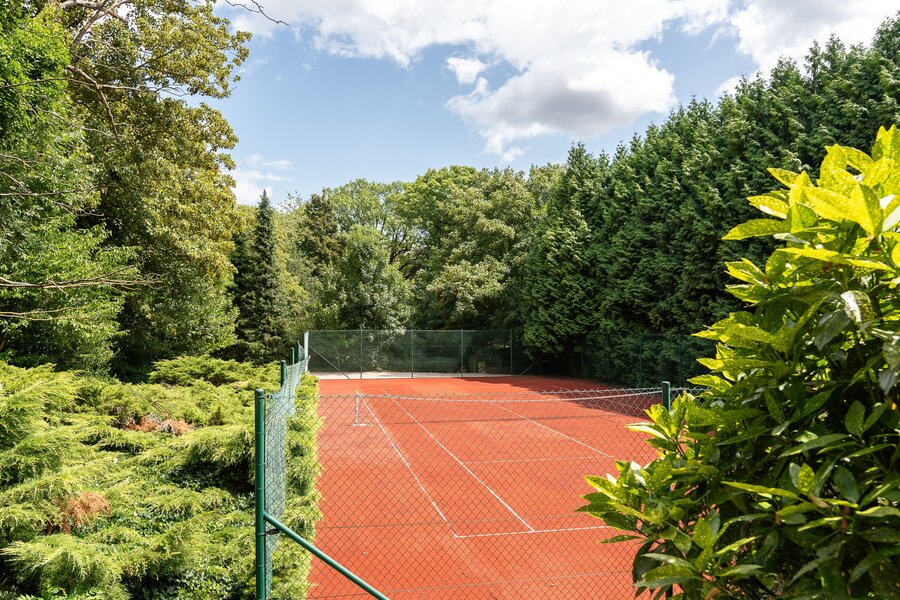 Het park, dat onberispelijk wordt onderhouden, omvat een zwembad van 12 x 6 meter en een tennisbaan.