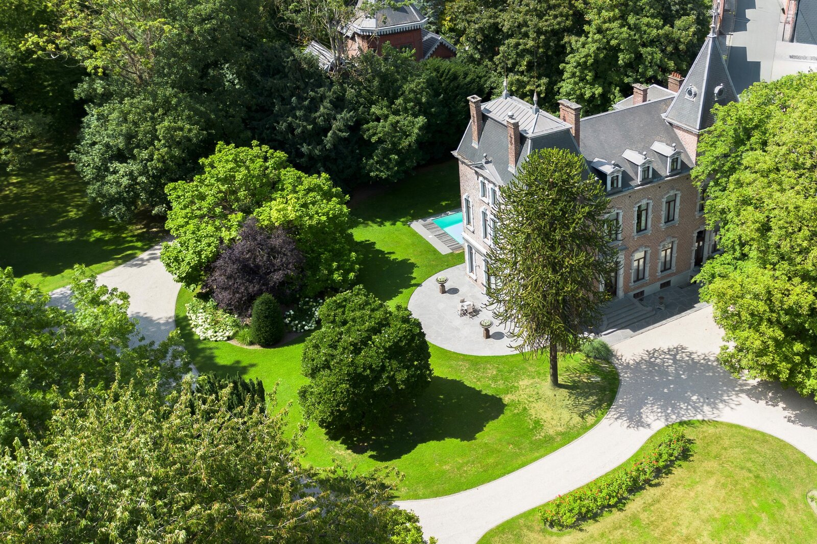 Uitzonderlijk pand uit de 19e eeuw in Lodelinsart, nabij Charleroi, midden in een privépark van ongeveer 1,5 hectare dat omgeven is door een ommuring. Rustige omgeving met toch snelle toegang tot de grote Belgische steden via de snelweg en tot de Europese hoofdsteden via het vliegtuig.
